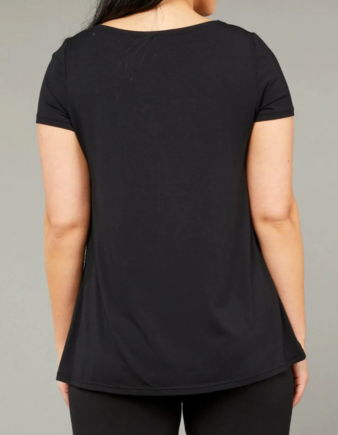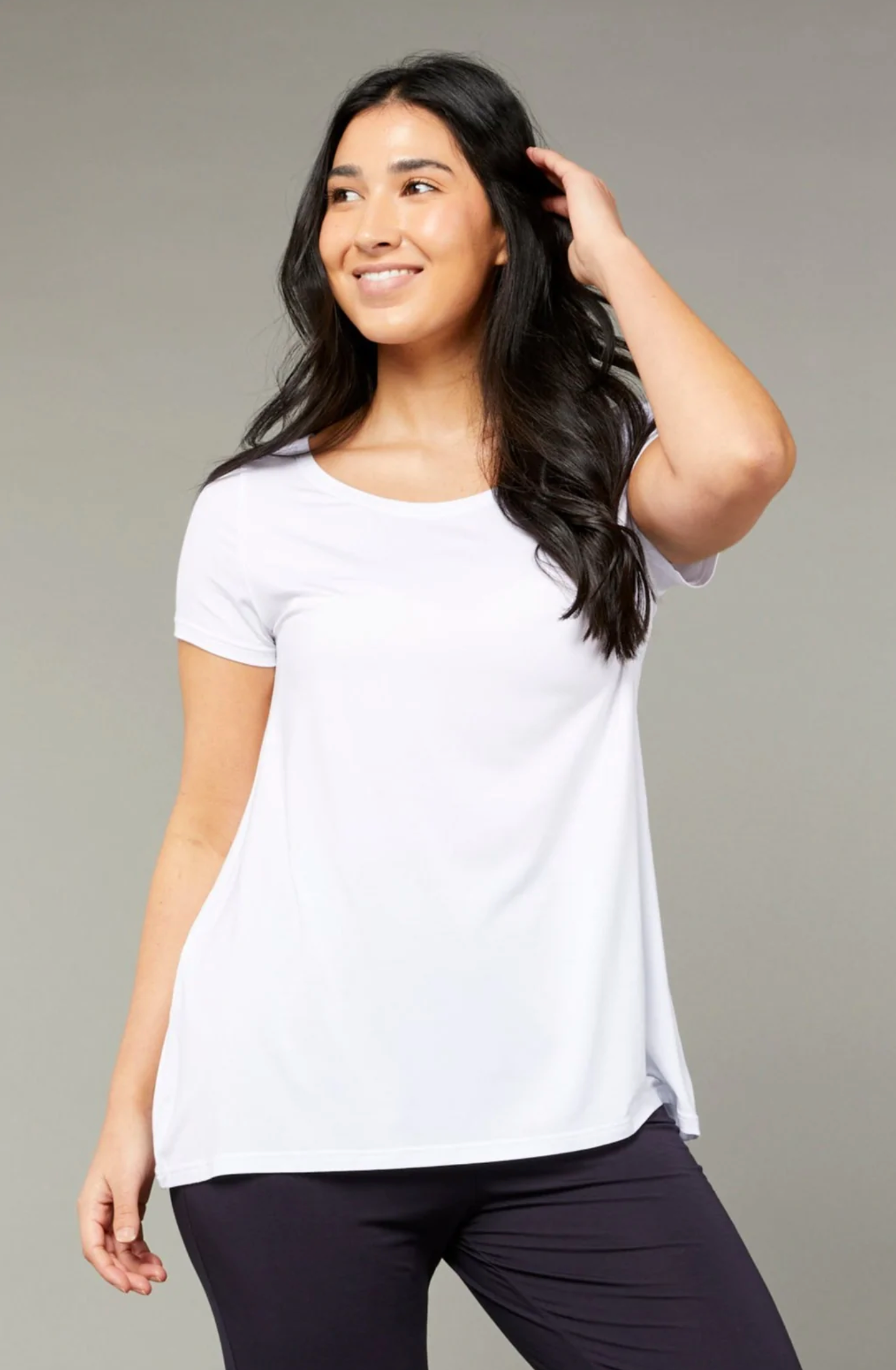 Tani make amazing quality basics in plain colours and fun prints alike, in staple shapes that suit everyone and go with everything. Truly an every day hero in your wardrobe Tani's micromodal fabric is breathable and silky smooth to the touch. The Swing Tee has a gentle A line shape through the otherwise neat fitting round neck stretch tee.