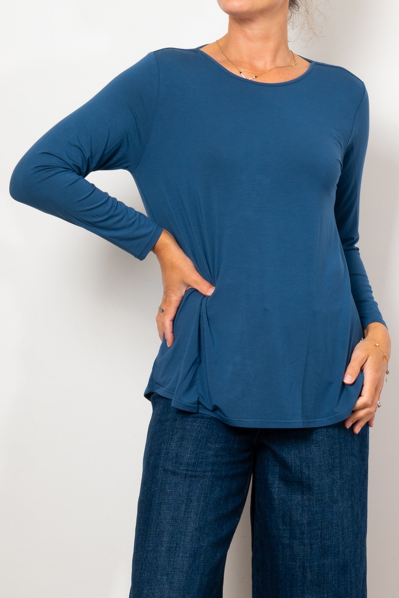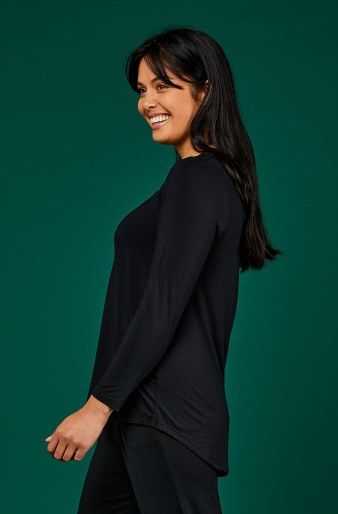 The Cara Long Sleeve offers the same comfortable fit as the Elbow Swing Tee, but in a longer sleeve version. This stylish tee features a longer body length, a curved hemline for extra coverage, and fabric that is both durable and won't pill. Perfect for everyday wear!