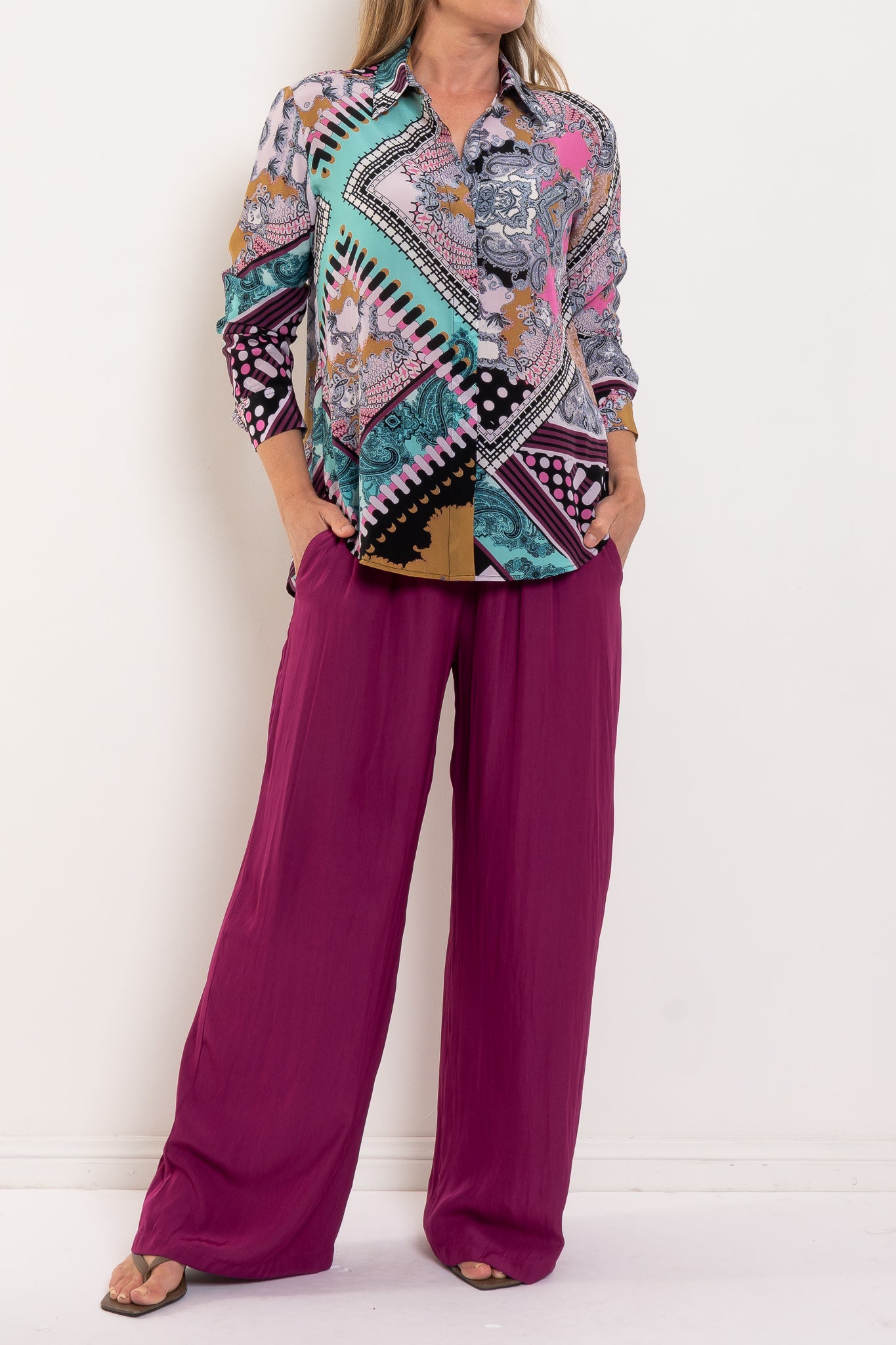 Mache fabric feels like a heavy silk but has all the easy care properties of polyester. Finished with "air flow" technology, Mache floats and billows around the wearer ethereally and drapes beautifully. Crease resistant and quick drying, it’s perfect for travel. |