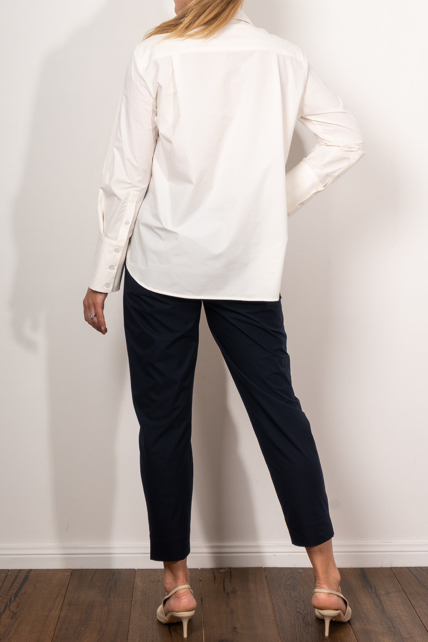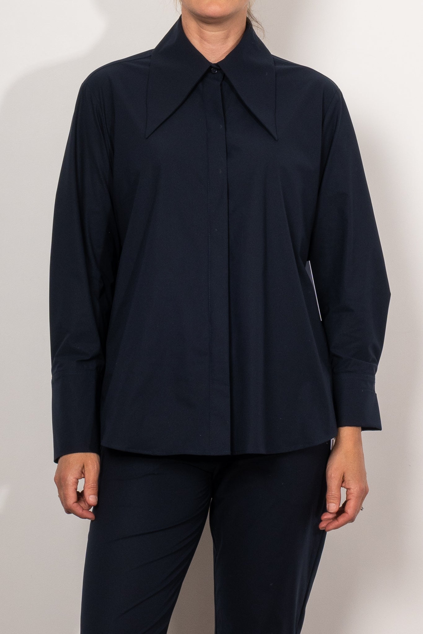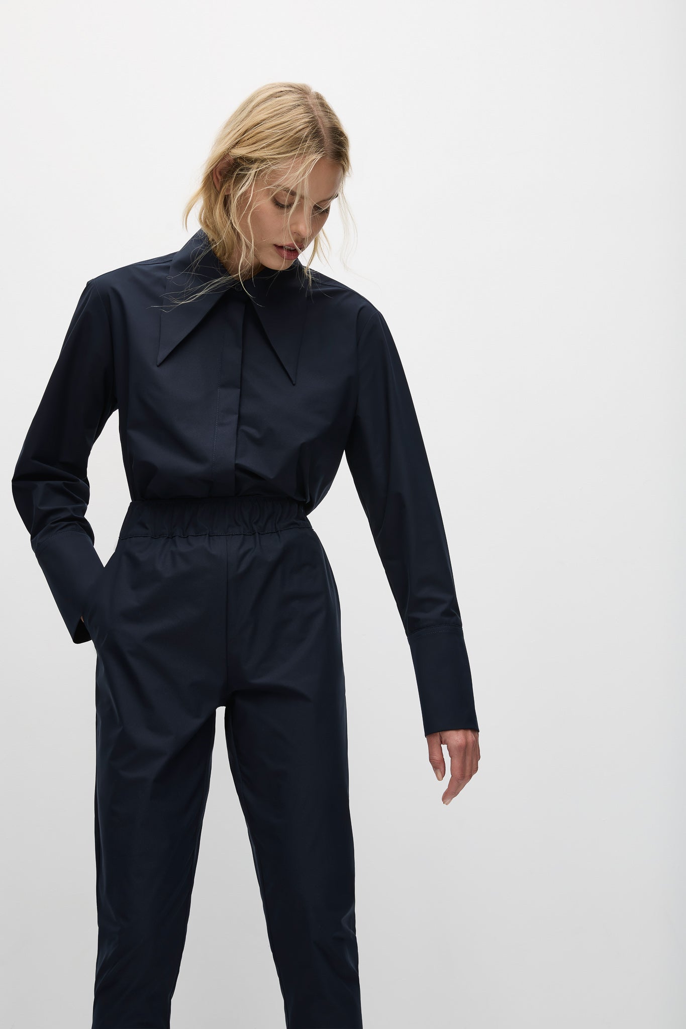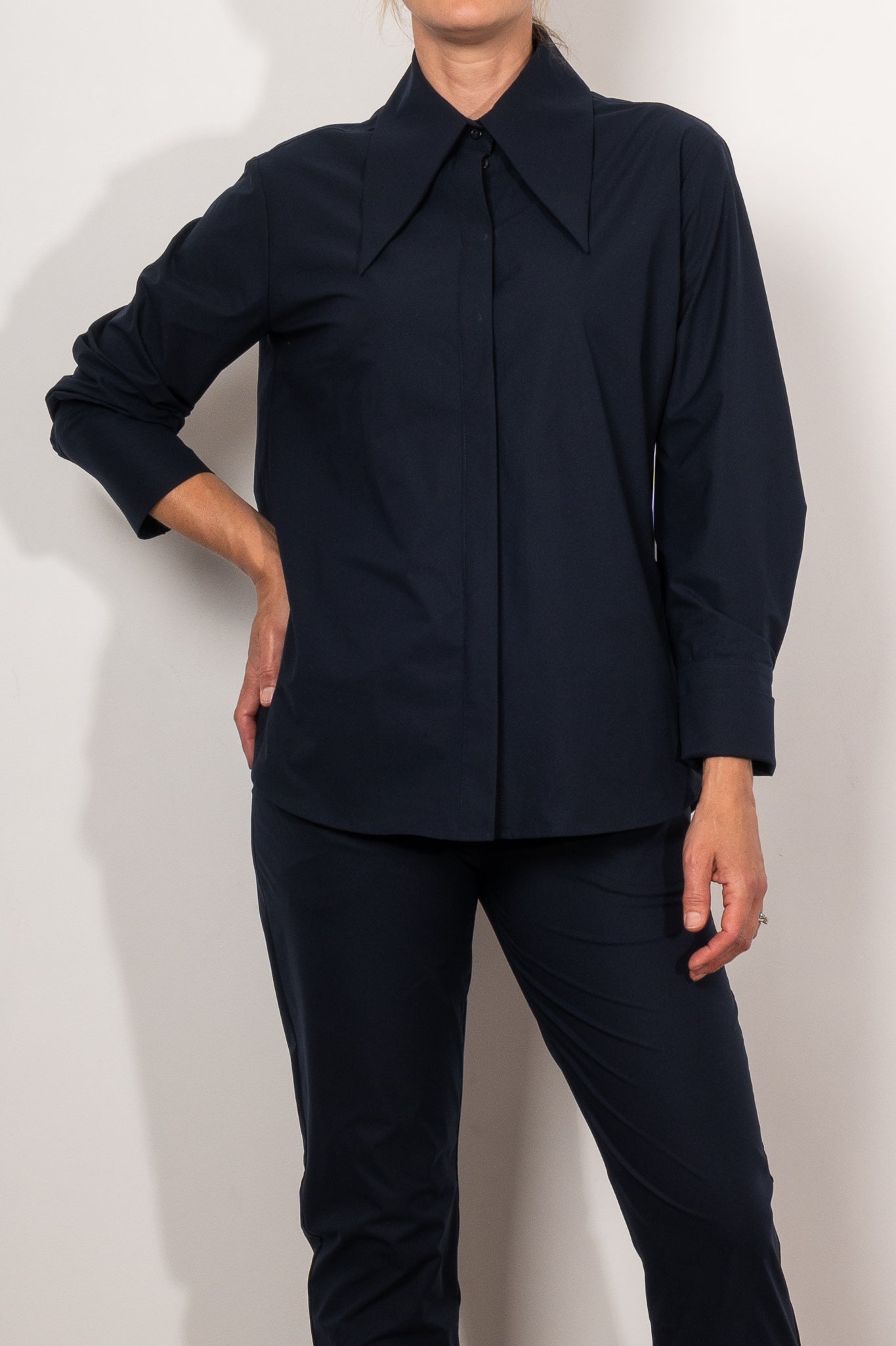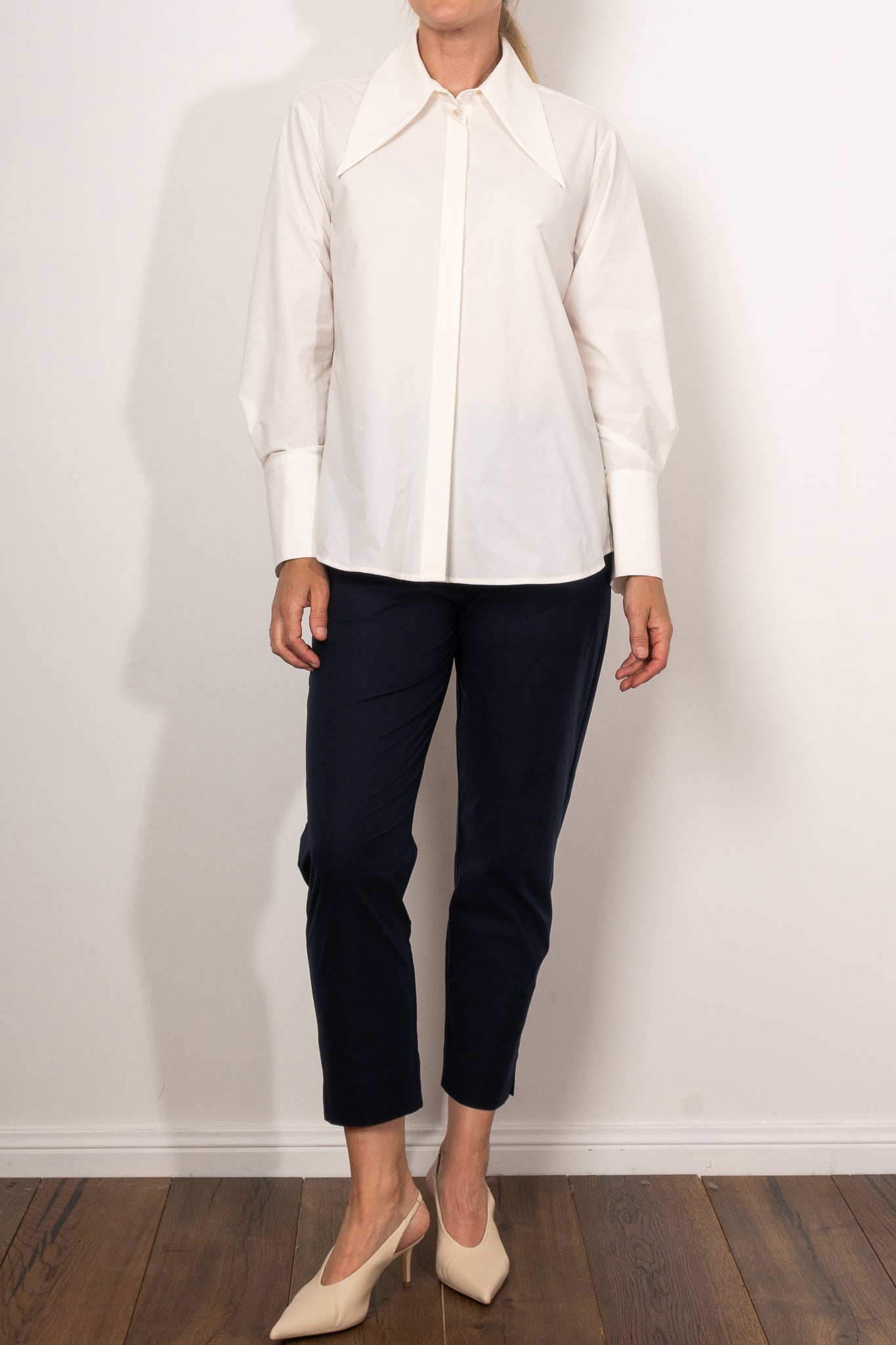 Introducing the Mela Purdie Peak Collar Shirt, crafted from premium Powder weave for a crisp feel and luxurious pearlised surface. This shirt features a sharp pointed collar, 4-way stretch fabric for comfort, concealed button closure, and full length sleeves with wide cuffs. Elevate your wardrobe with this Australian-designed and made piece.
