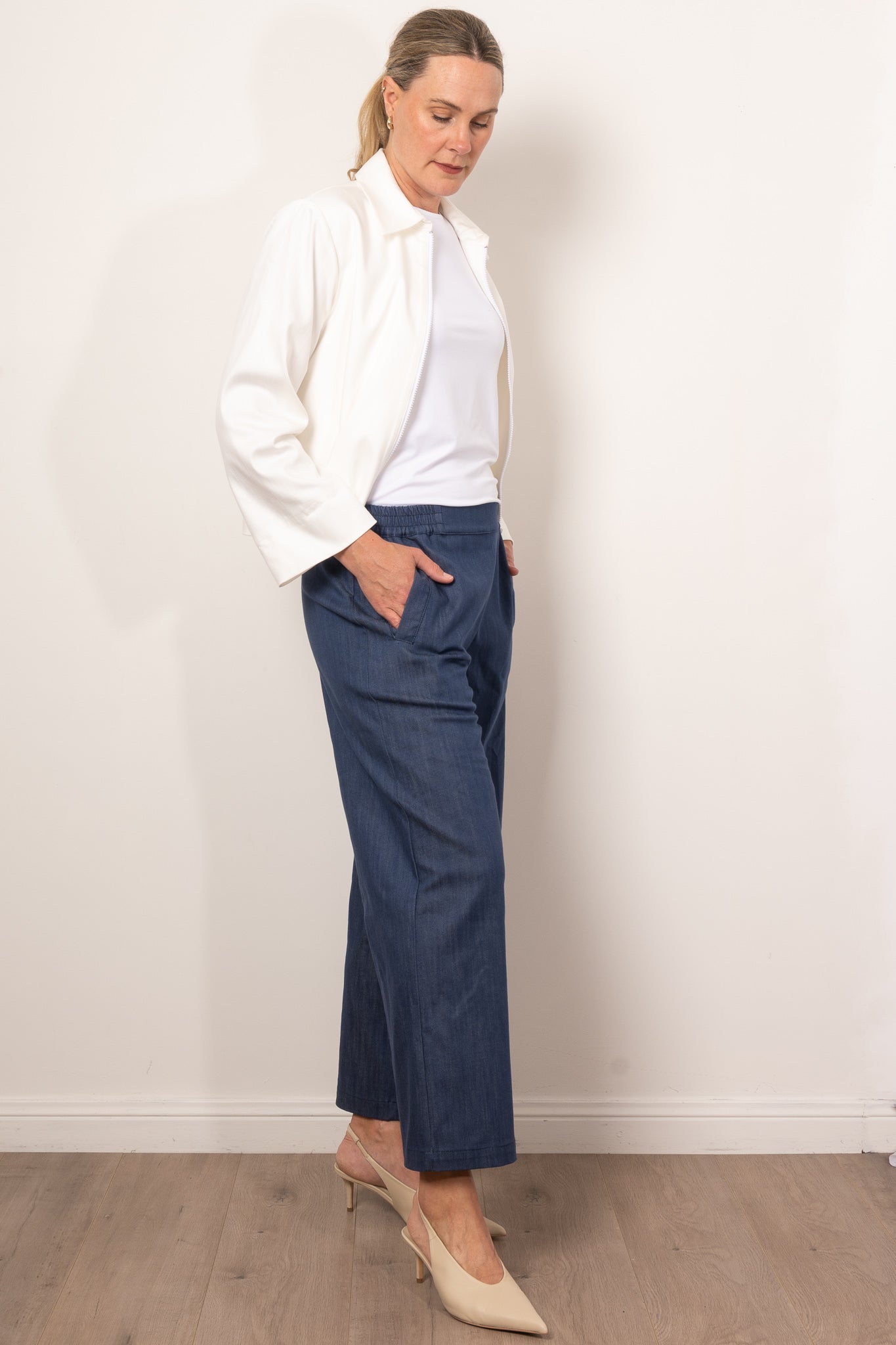 Indulge in sophistication with Mela Purdie's Welt Pocket Pant in Soft Stretch Denim. The luxurious 4-Way Stretch fabric offers unmatched comfort, while the straight silhouette and cropped length create a polished look. Featuring welt pockets and a firm flat front waistband, this pant exudes elegance and is designed and made in Australia.