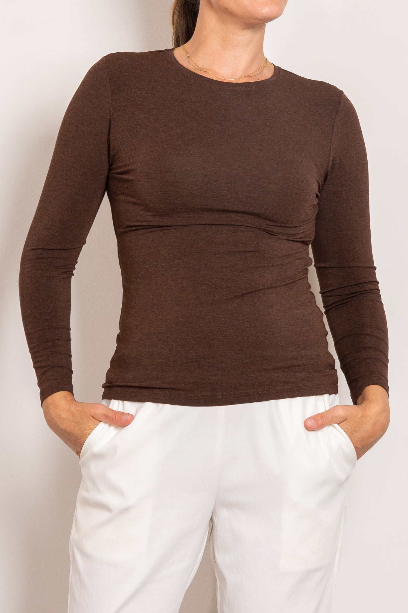 The High Neck Long Sleeve Top by Tani is great worn on its own, or a perfect basic for layering. A fitted top with a high neckline; created from renewable Beechwood, the soft Tani fabric can be worn year round.