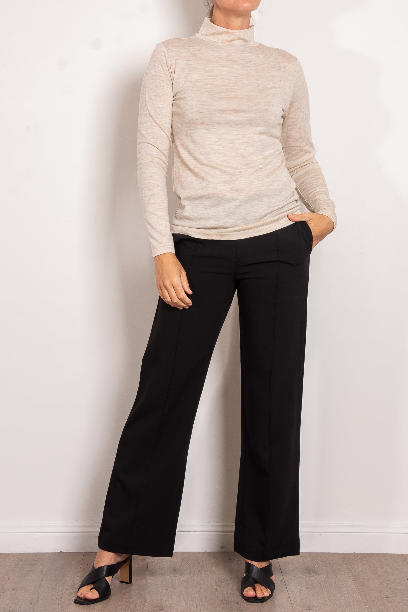 Stay warm and stylish in the Vassalli Merino Polo Neck Top. Crafted from the finest smooth merino wool, this slim-fit long-sleeved layering piece is hip length, perfect for keeping you cozy and fashionable. This finely spun wool is soft and smooth to touch, unless you are very sensitive to wool this top won't itch, even when worn directly on the skin. The handfeel is light, superfine and smooth.