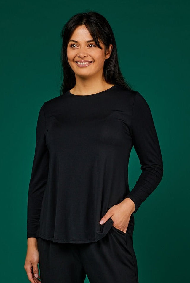 A true layering hero, the long sleeve base layer offers both form and function. Lightweight yet warm, it's perfect under knits, jackets, and dresses—but just as stylish worn on its own. With a flattering fit and refined finish, it holds its own as a standalone top, making it an essential piece for effortless, everyday dressing. A hardworking staple that bridges seasons and elevates your capsule wardrobe.
