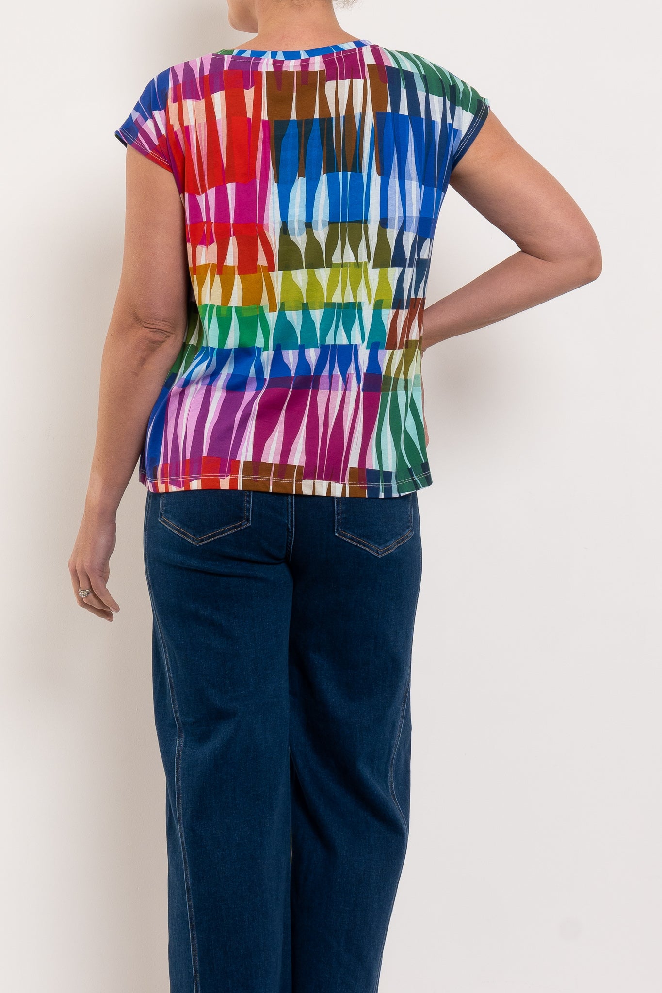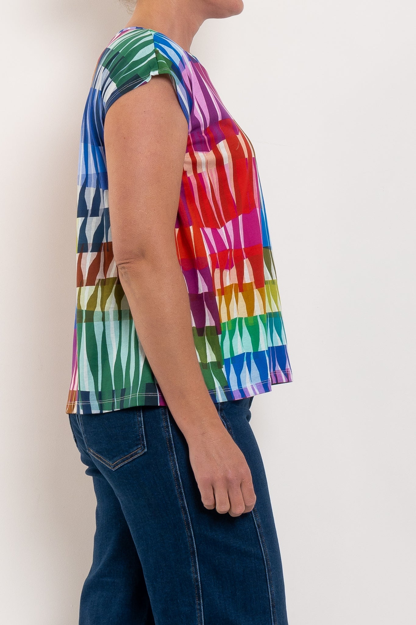 The Anden Tee in the vibrant Lind Light Print combines style and comfort effortlessly. Made from 100% organic cotton jersey, this breathable tee offers a soft feel with a structured fit. Its regular cut features capped sleeves, underarm inverted tucks for added volume, and side splits at the hem, enhancing both movement and style. Perfect for pairing with your favorite denim or dressing up with linen bottoms, this versatile tee adds a fresh, lively touch to any wardrobe.