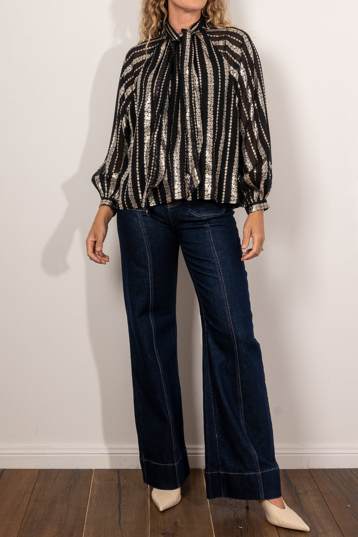 Set yourself up for timeless AM to PM wear with the ‘Just Bow with it’ top. Crafted in the subtle, shimmering ‘Daisy for You’ Lurex embroidered jacquard, this top makes for the perfect piece to take you from a work day in the office to a night out with your girlfriends. Amp up the drama with the romantic pussy-bow and match with silver sling backs for the ultimate glimmering look.