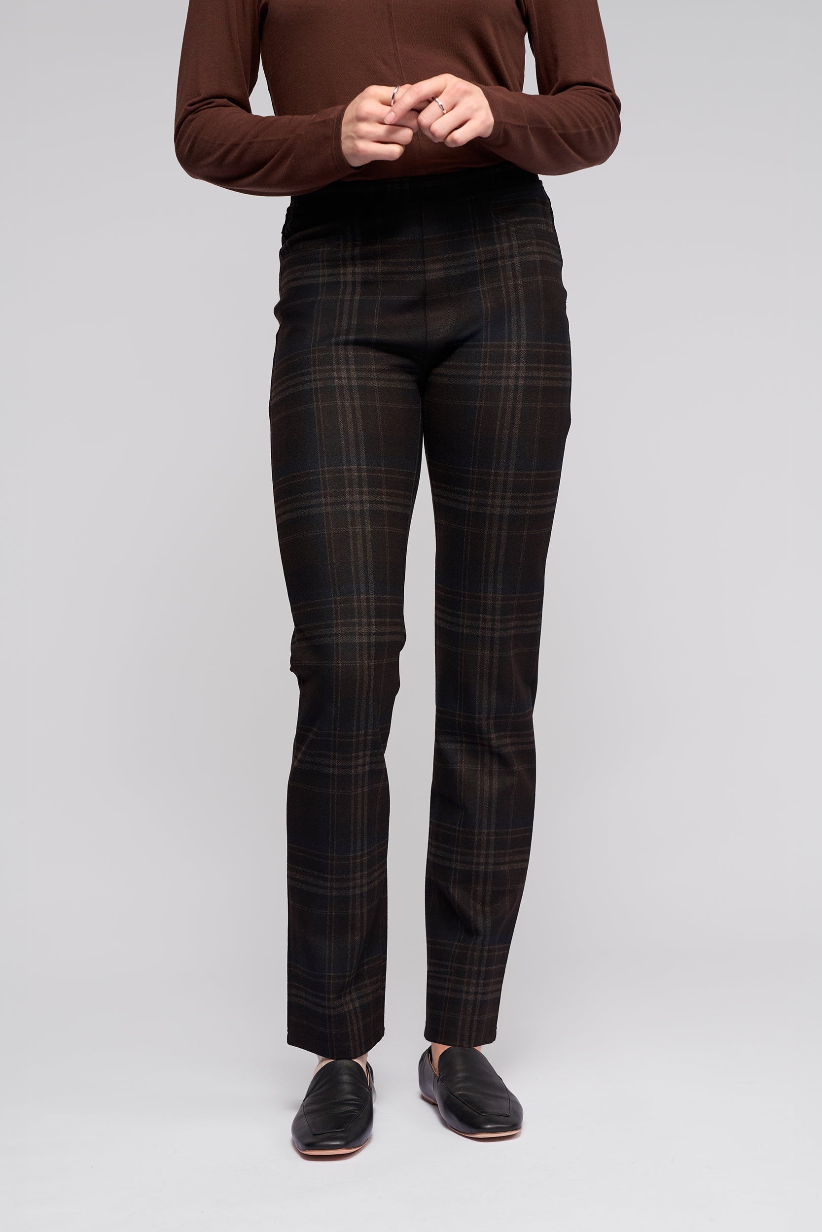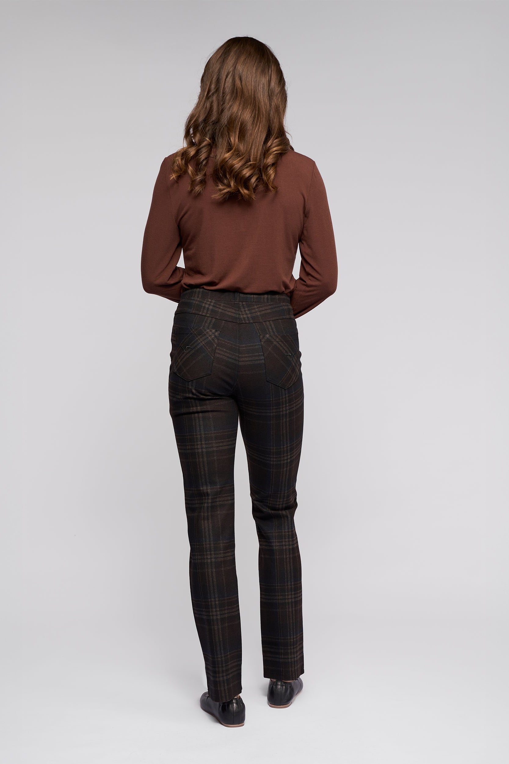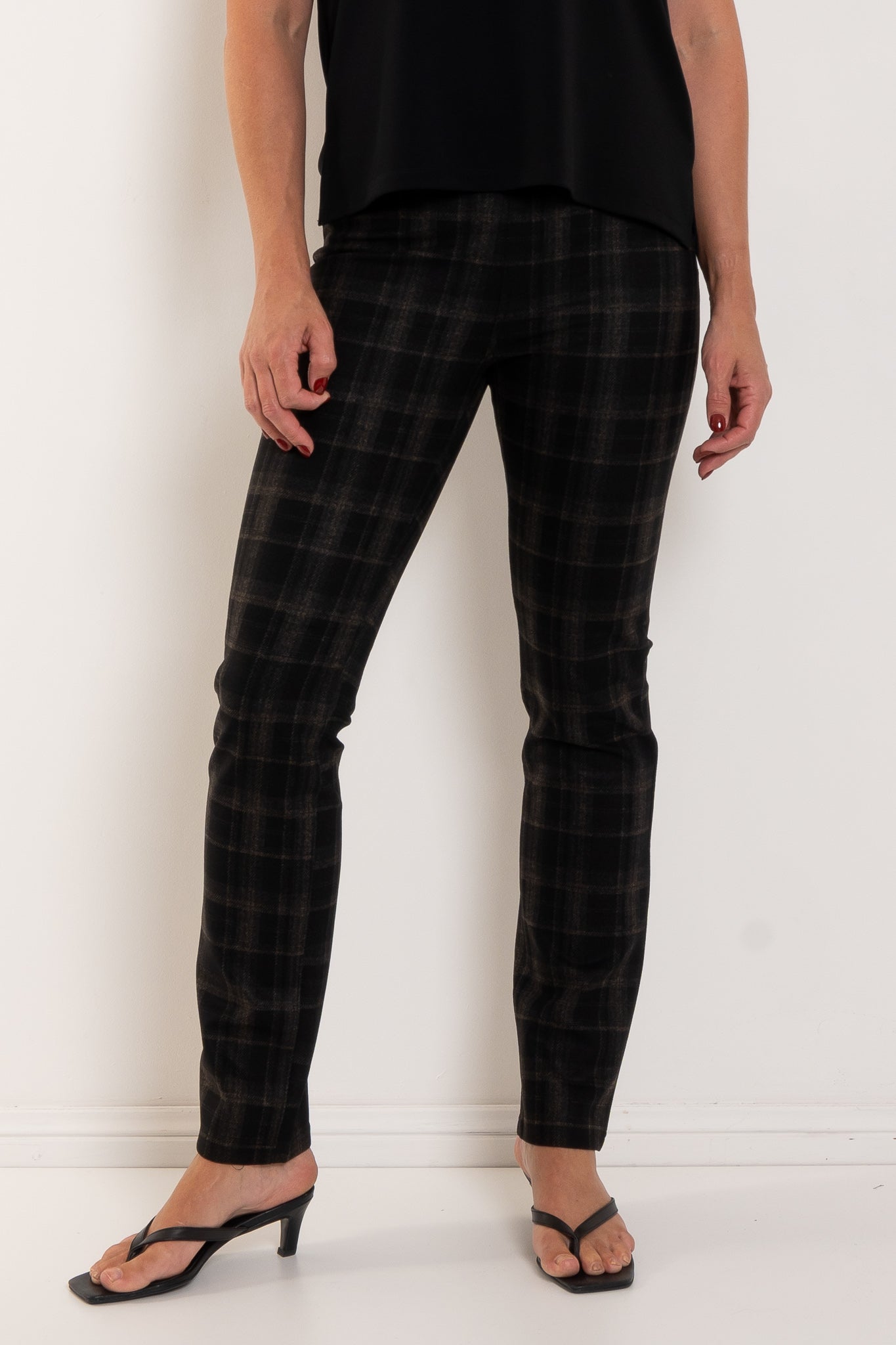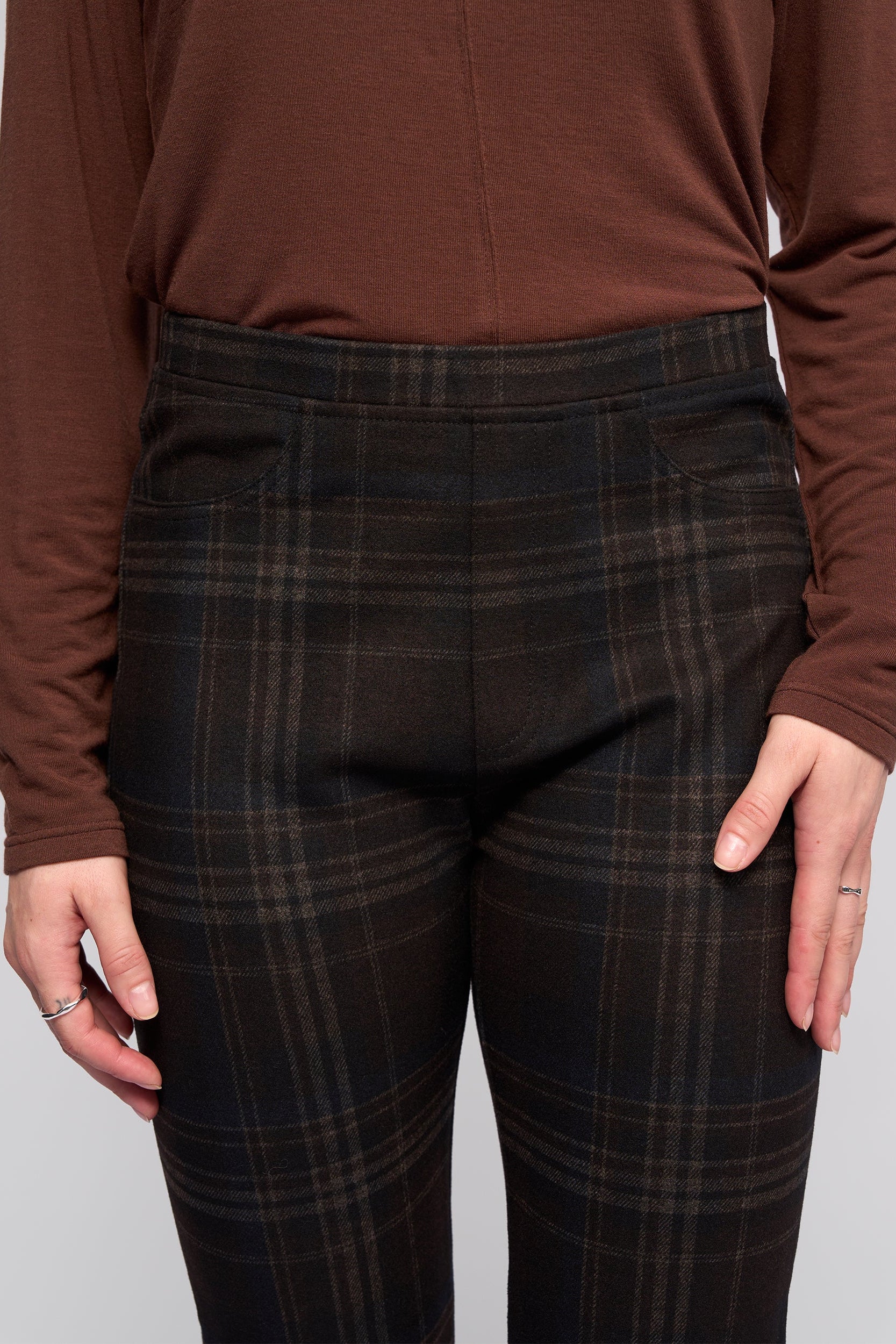 Effortless elegance meets everyday comfort in this slim pull-on pant. Crafted from stretch ponti fabric, it offers a streamlined silhouette with an elasticated waistband for all-day ease. Refined details—including a faux fly, faux front pockets, and functional back patch pockets—deliver a polished finish without compromising on practicality. Perfect for transitioning from office to weekend wear.