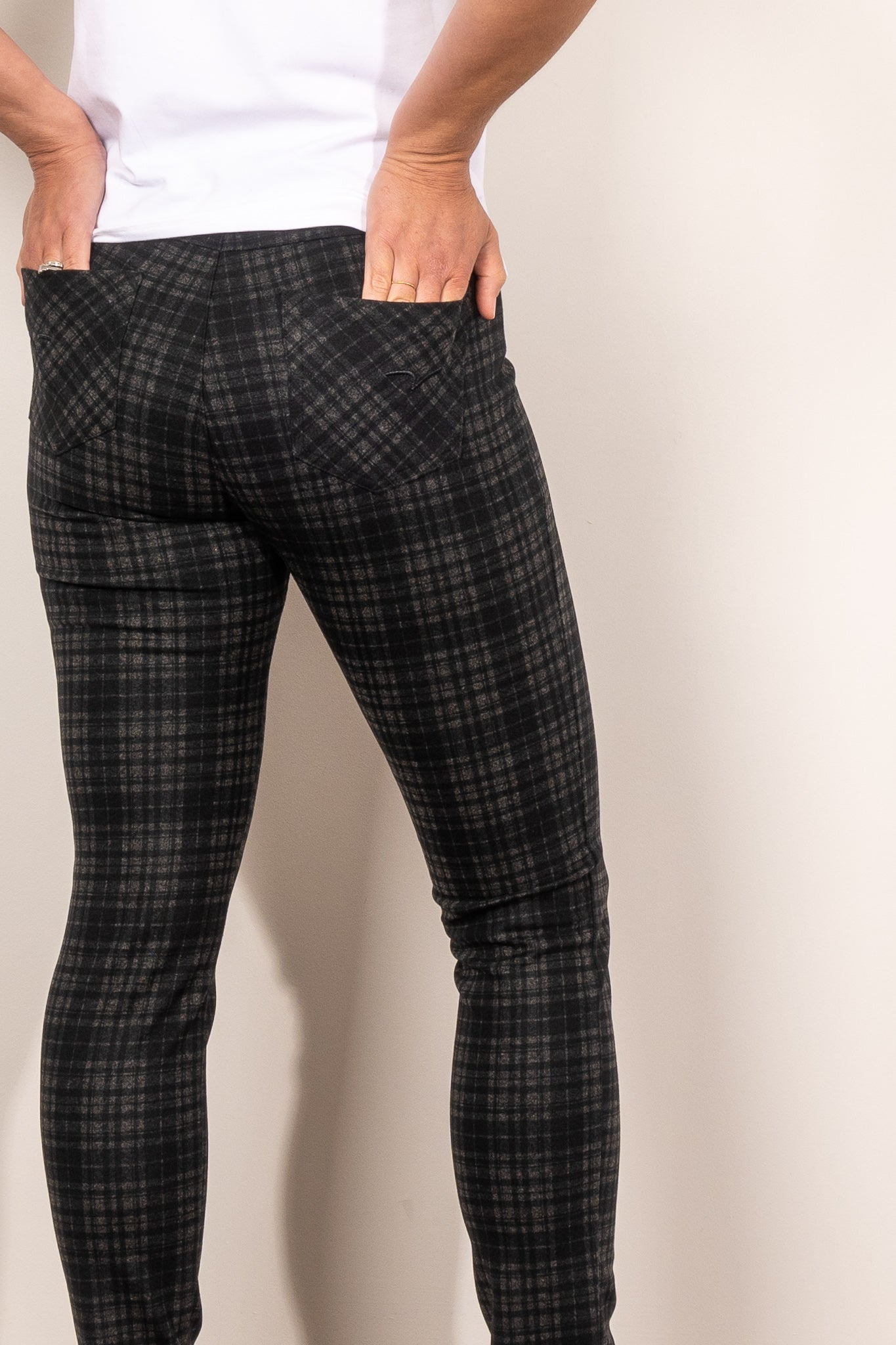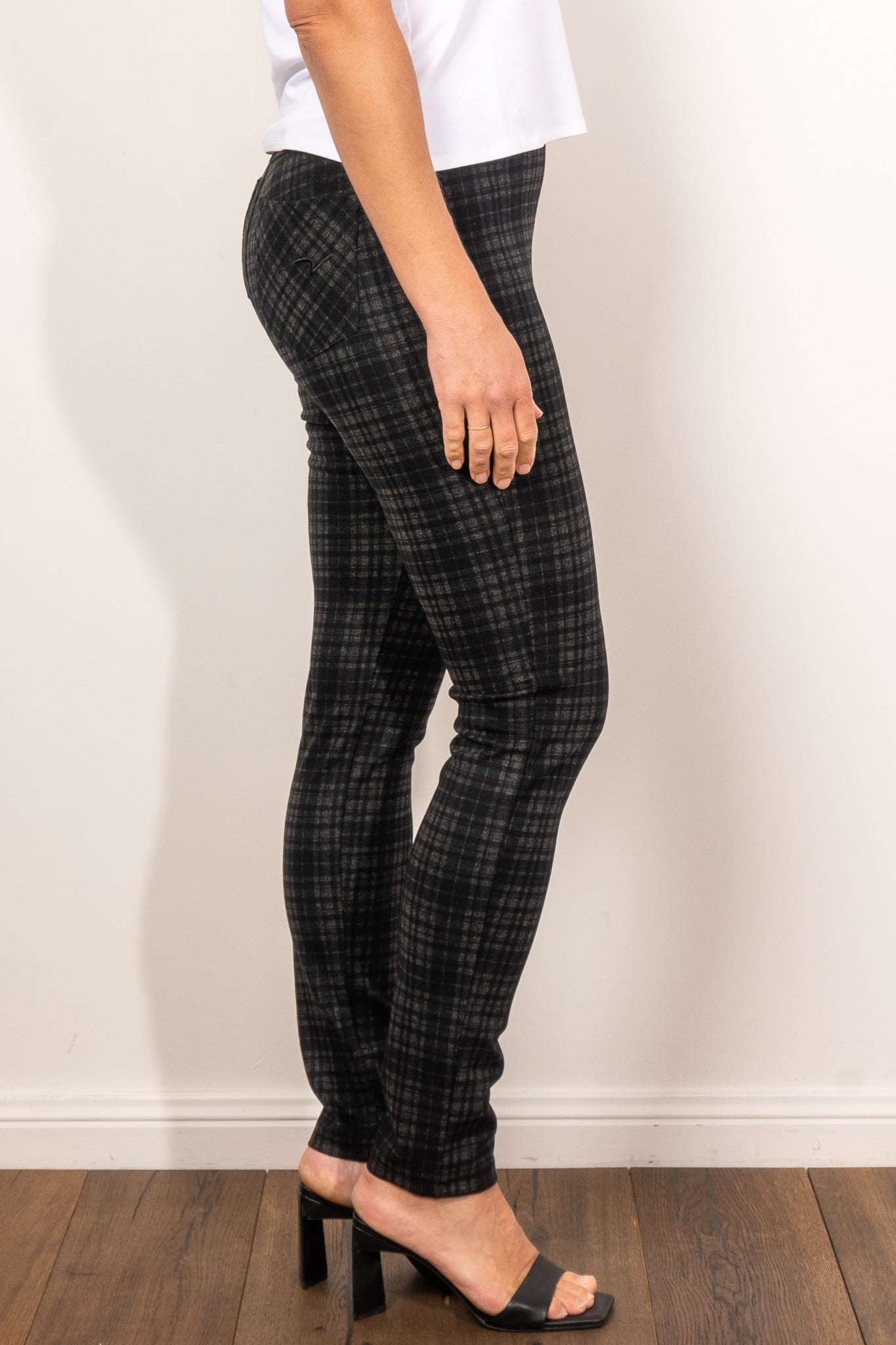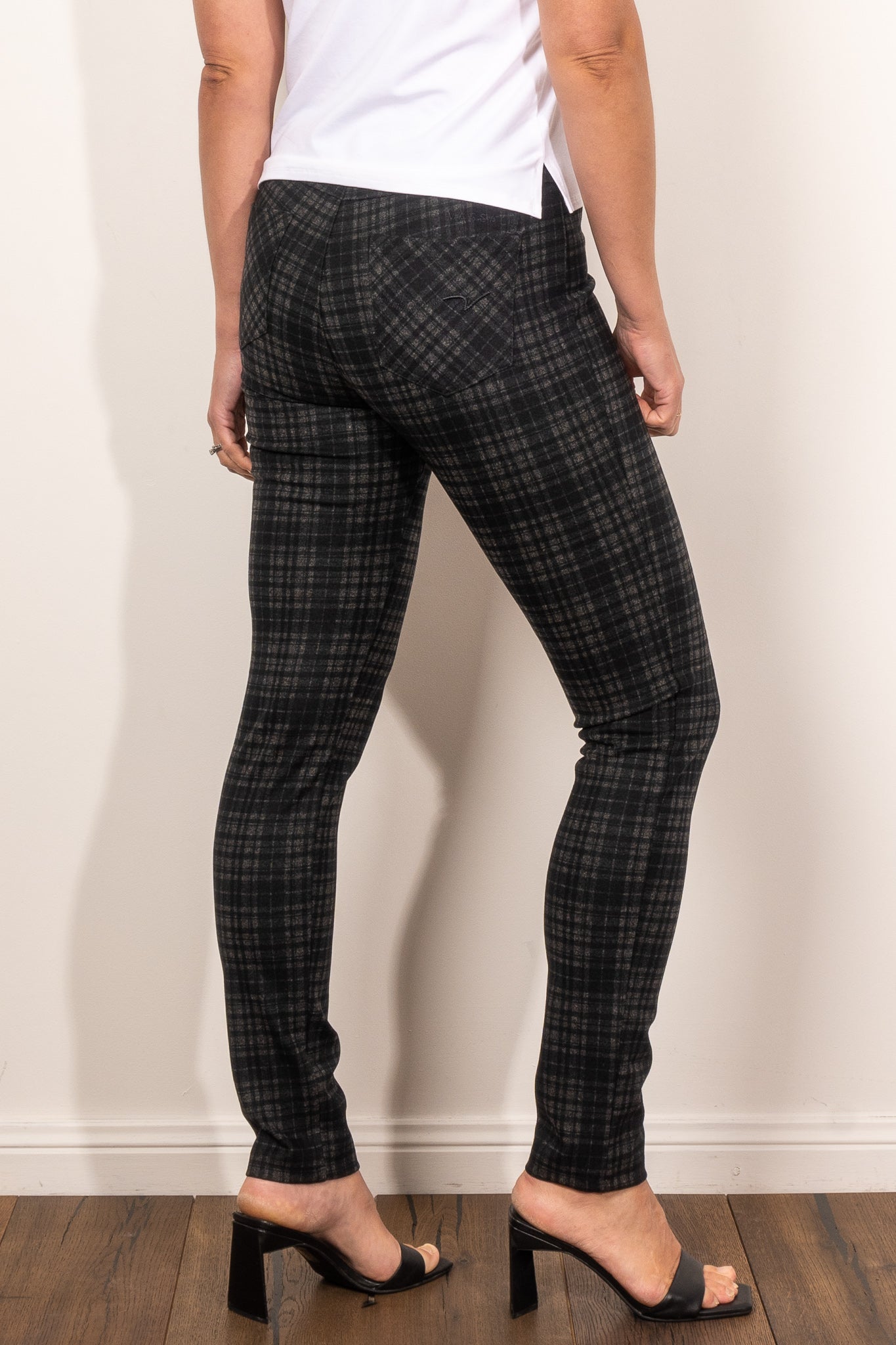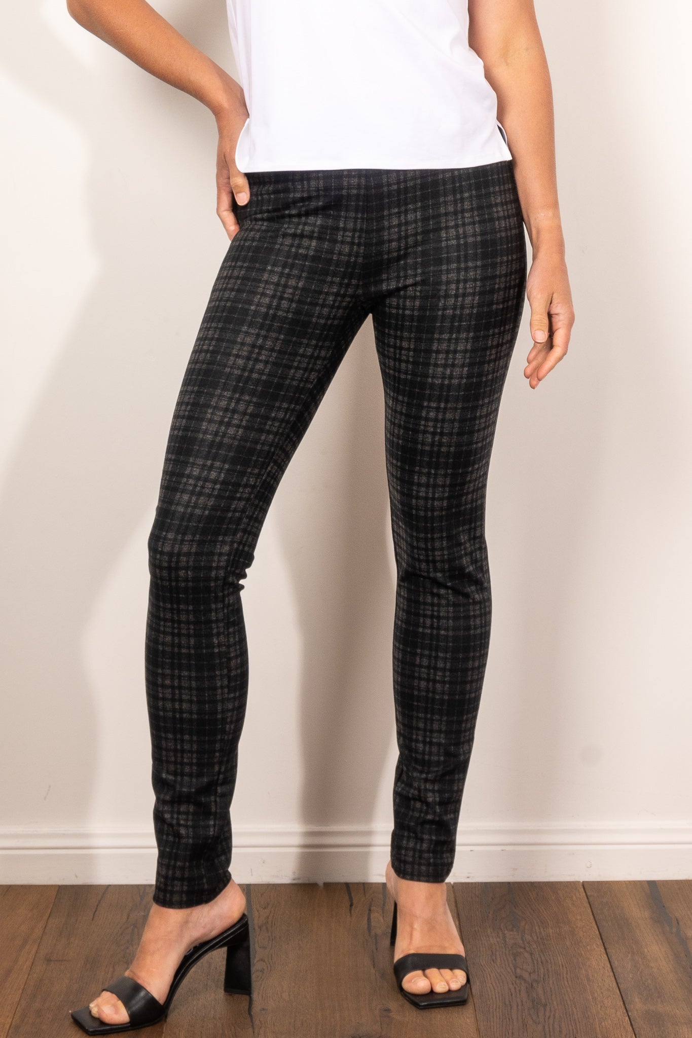 Enhance your winter wardrobe with the Vassalli Bennett Skinny Leg Ponti Pant. Crafted from a stretchy and soft winter weight fabric, this pull-on pant features a classic plaid design in dark tones for a sleek and sophisticated look. With a smooth front and functional back pockets, this full-length pant is both comfortable and stylish, making it the perfect addition to your wardrobe.