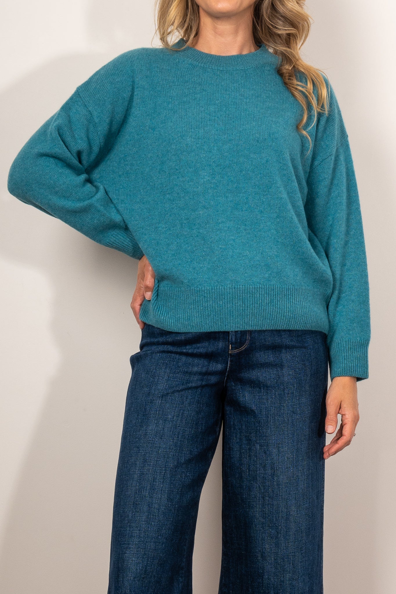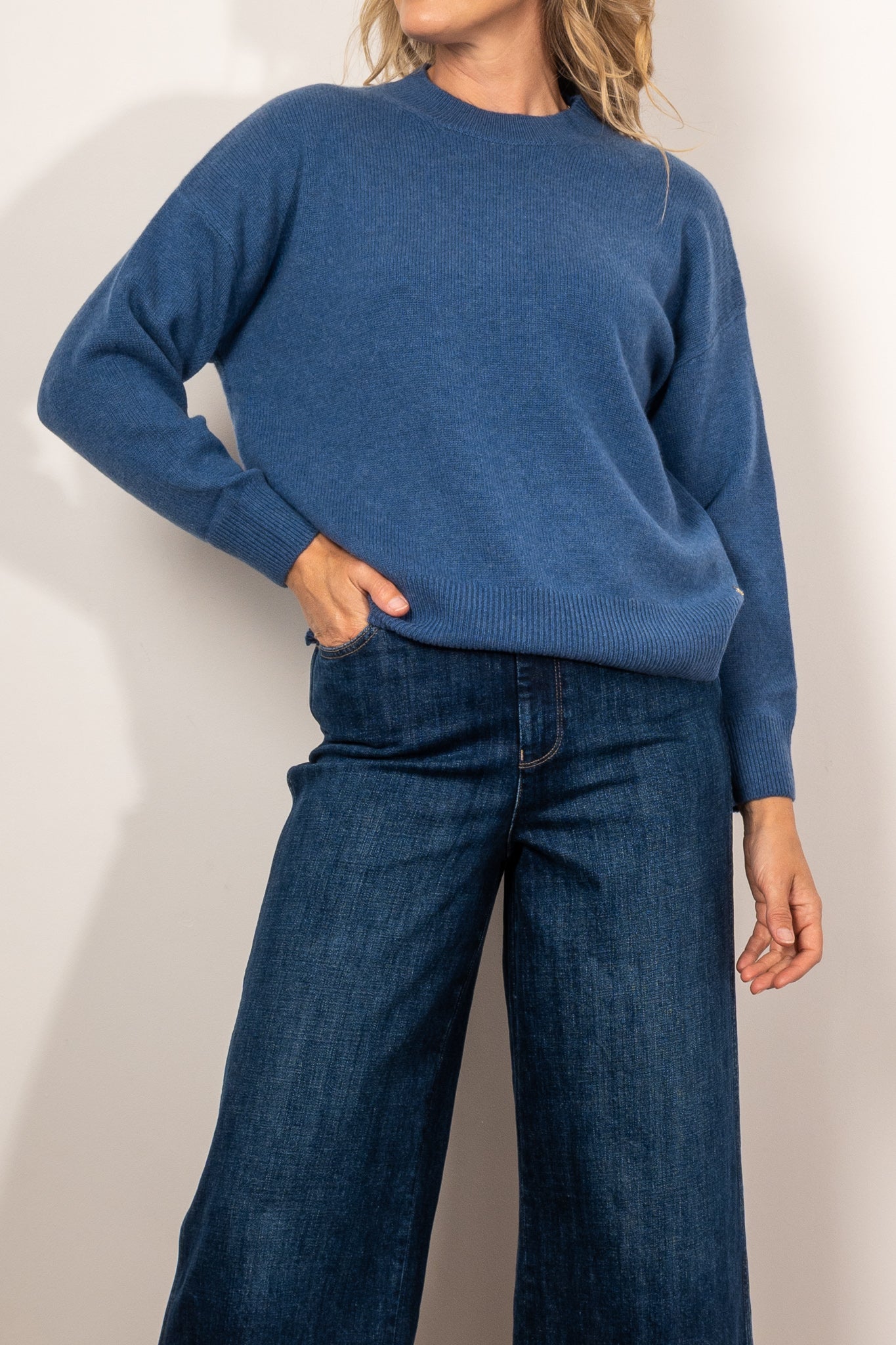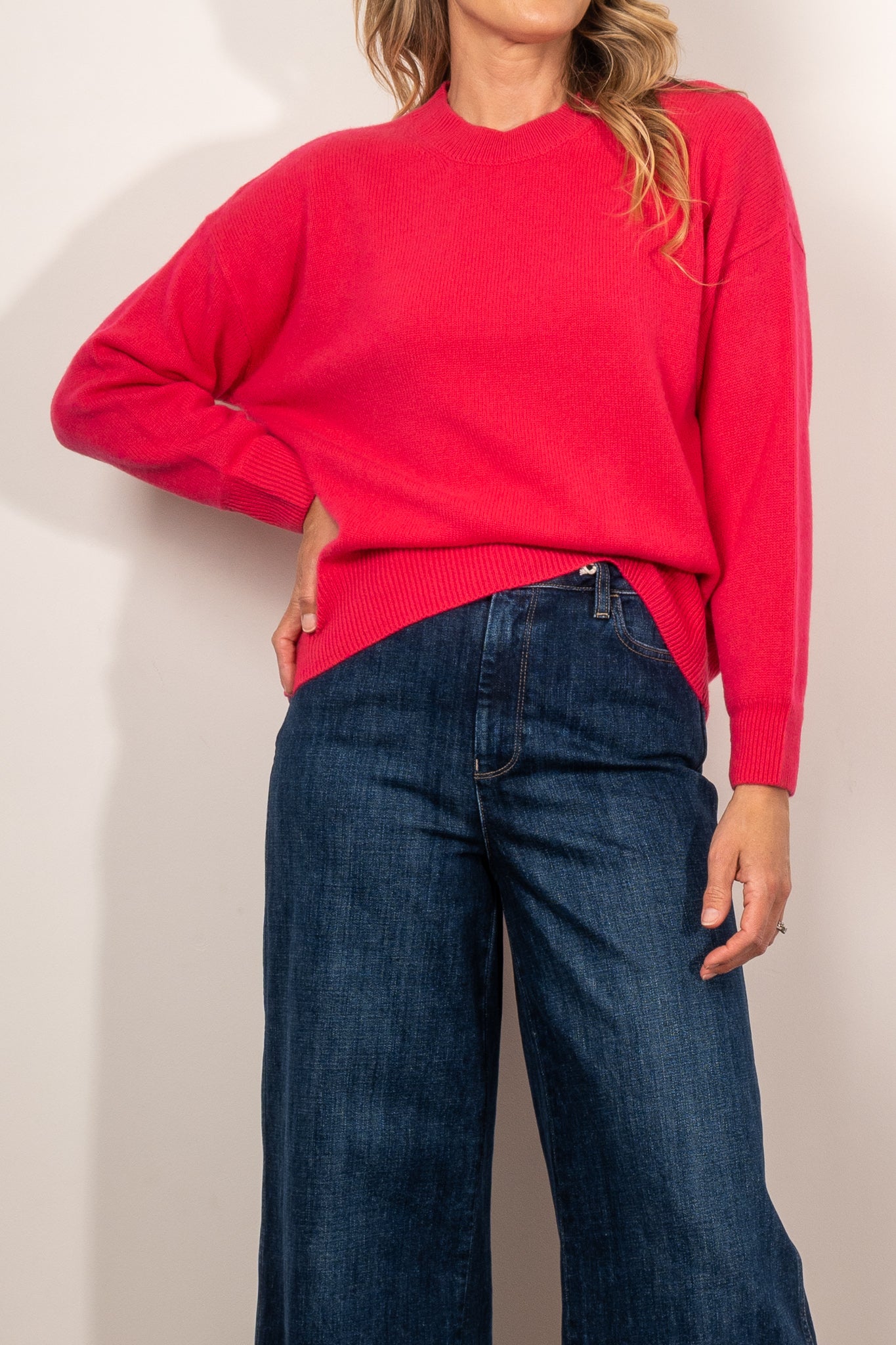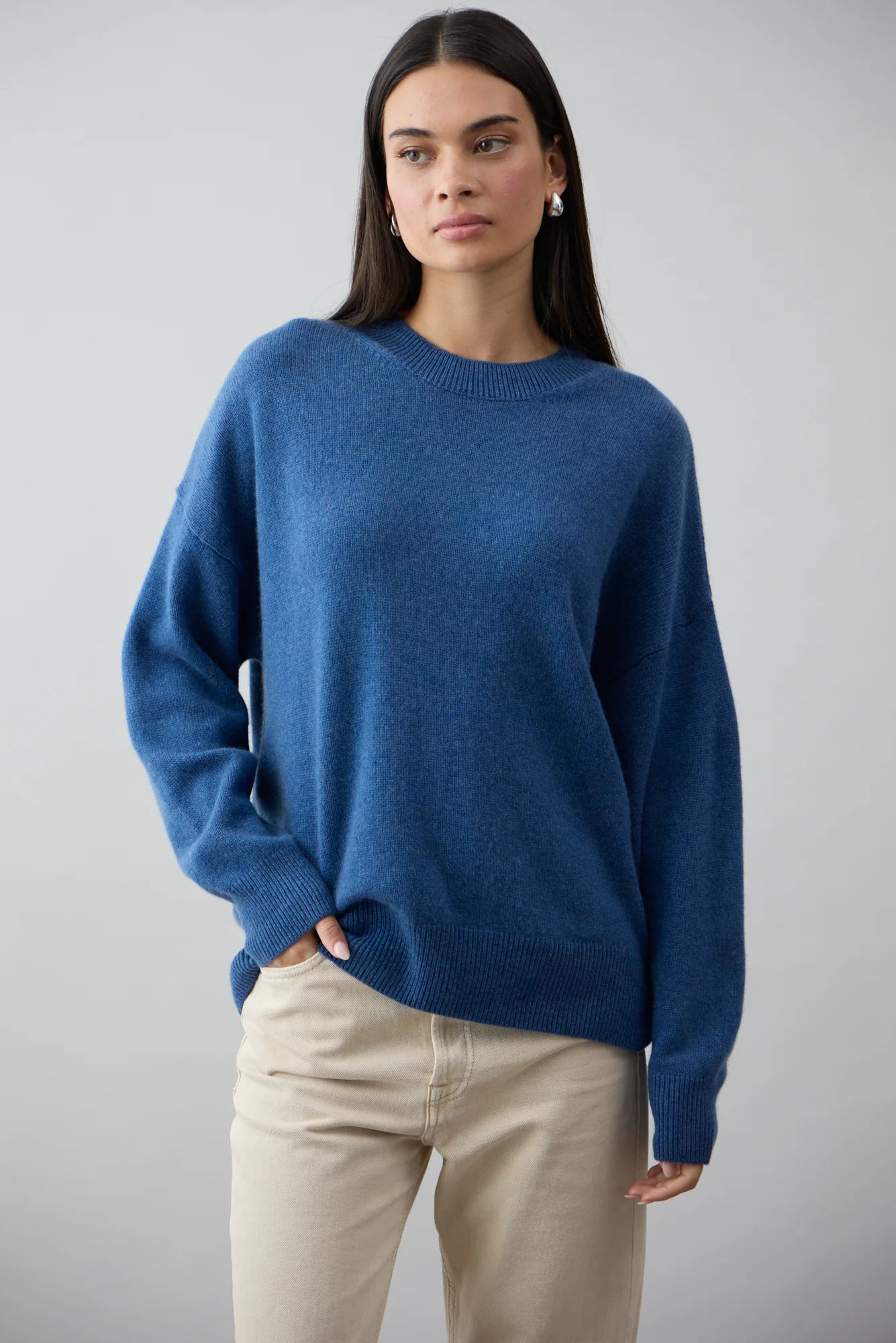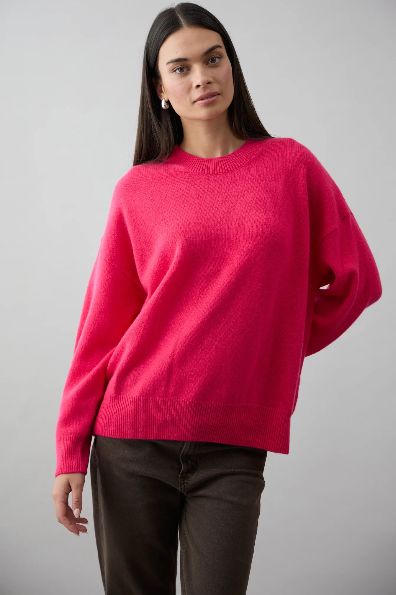 Indulge in luxury this winter with the new Mia Fratino Cooper Crew. Crafted from cashmere, this classic fit sweater features a flattering crew neck and fitted band at the hip for a comfortable and stylish look. Elevate your winter wardrobe with this must-have piece.