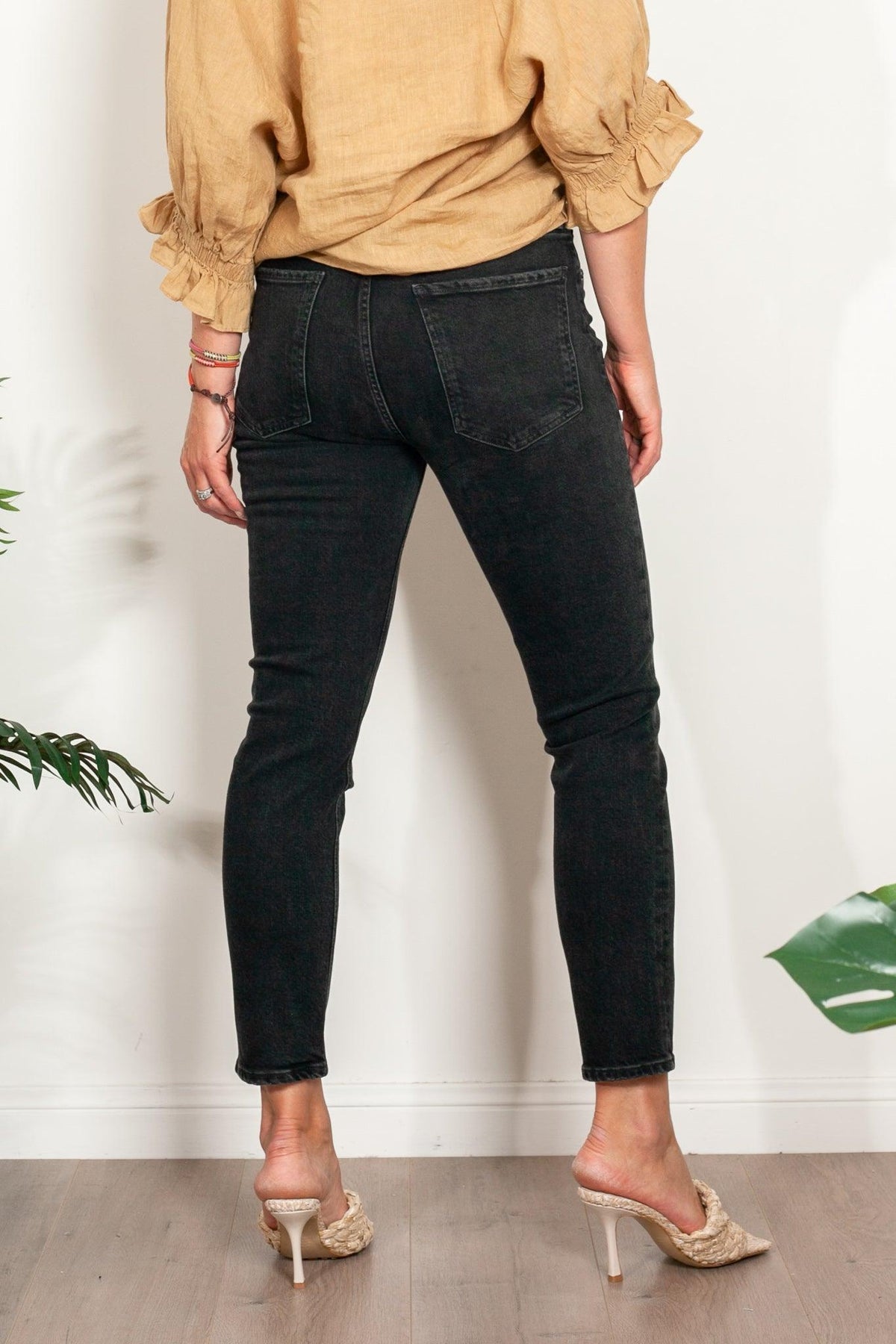 A go-anywhere, wear-with-anything kind of jean. This comfortable high-rise has a skinny straight fit with just the right amount of stretch. These jeans are cut from a 59% organic cotton denim, with 1% Elastane for comfort whilst maintaining that firm smoothing effect that a slightly rigid denim has. The button fly smooths and flattens the front while strategically placed pockets lift the bot!