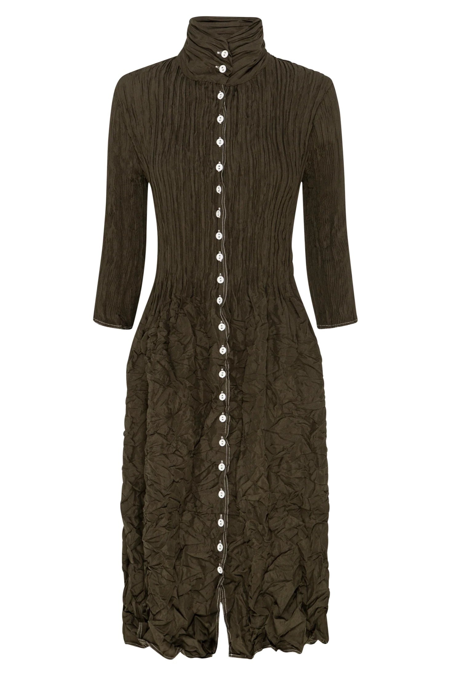 Make a lasting impression in this Nehru Coat Dress. Crafted with a soft smash pleating, Nehru Collar and subtle button detailing, you'll be sure to dazzle with its eye-catching shimmer. Perfect for any occasion, this versatile piece is a must-have!