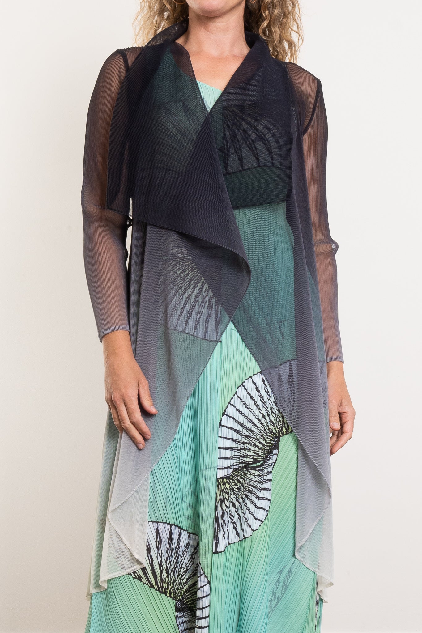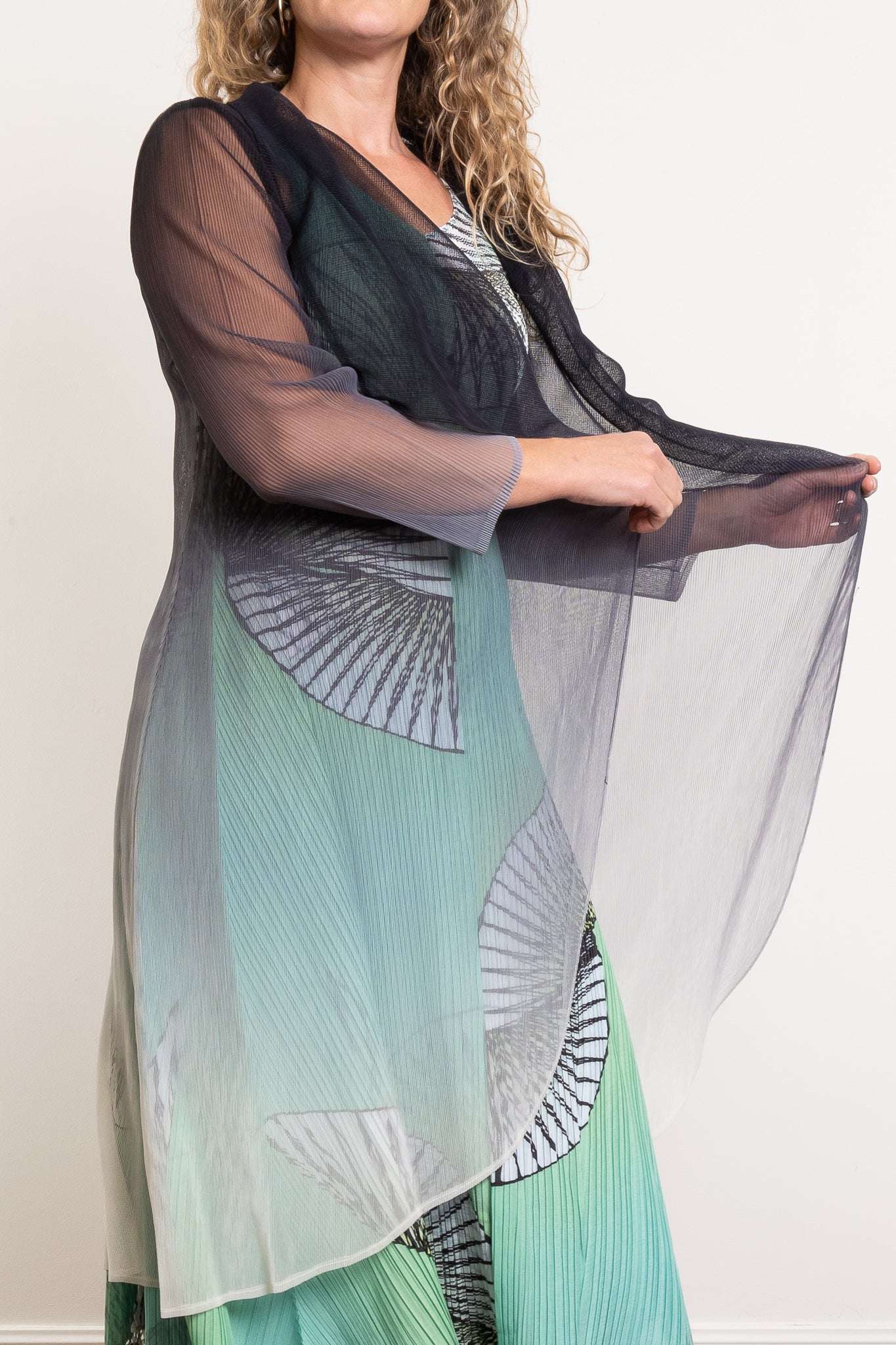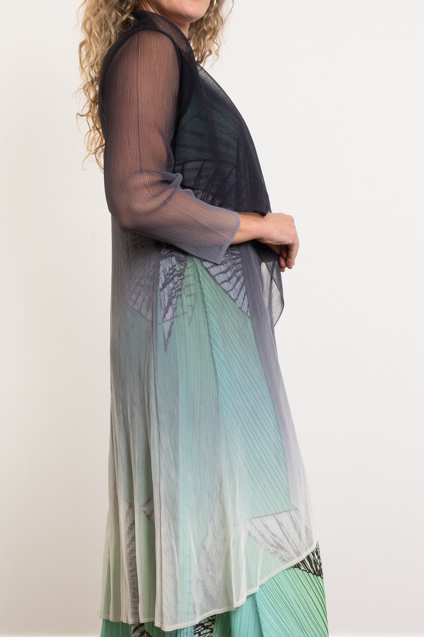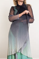 Light as air and endlessly fluid, the Cosa Coat is a sheer statement in movement and form. Crafted from 100% Fine Mesh and dyed in a soft ombré gradient, this longline layer features a delicate waterfall collar and slim sleeves. The lightweight coat drapes and flows with ease, designed to accentuate motion and bring a sense of quiet drama to any ensemble.