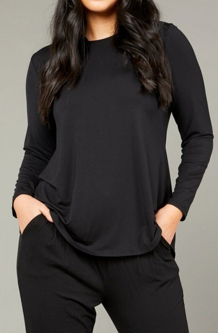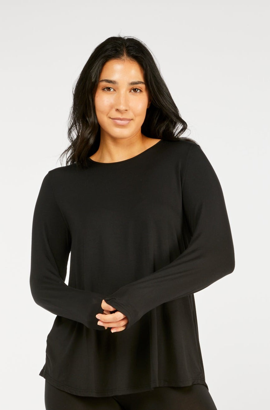 The Cara Long Sleeve offers the same comfortable fit as the Elbow Swing Tee, but in a longer sleeve version. This stylish tee features a longer body length, a curved hemline for extra coverage, and fabric that is both durable and won't pill. Perfect for everyday wear!