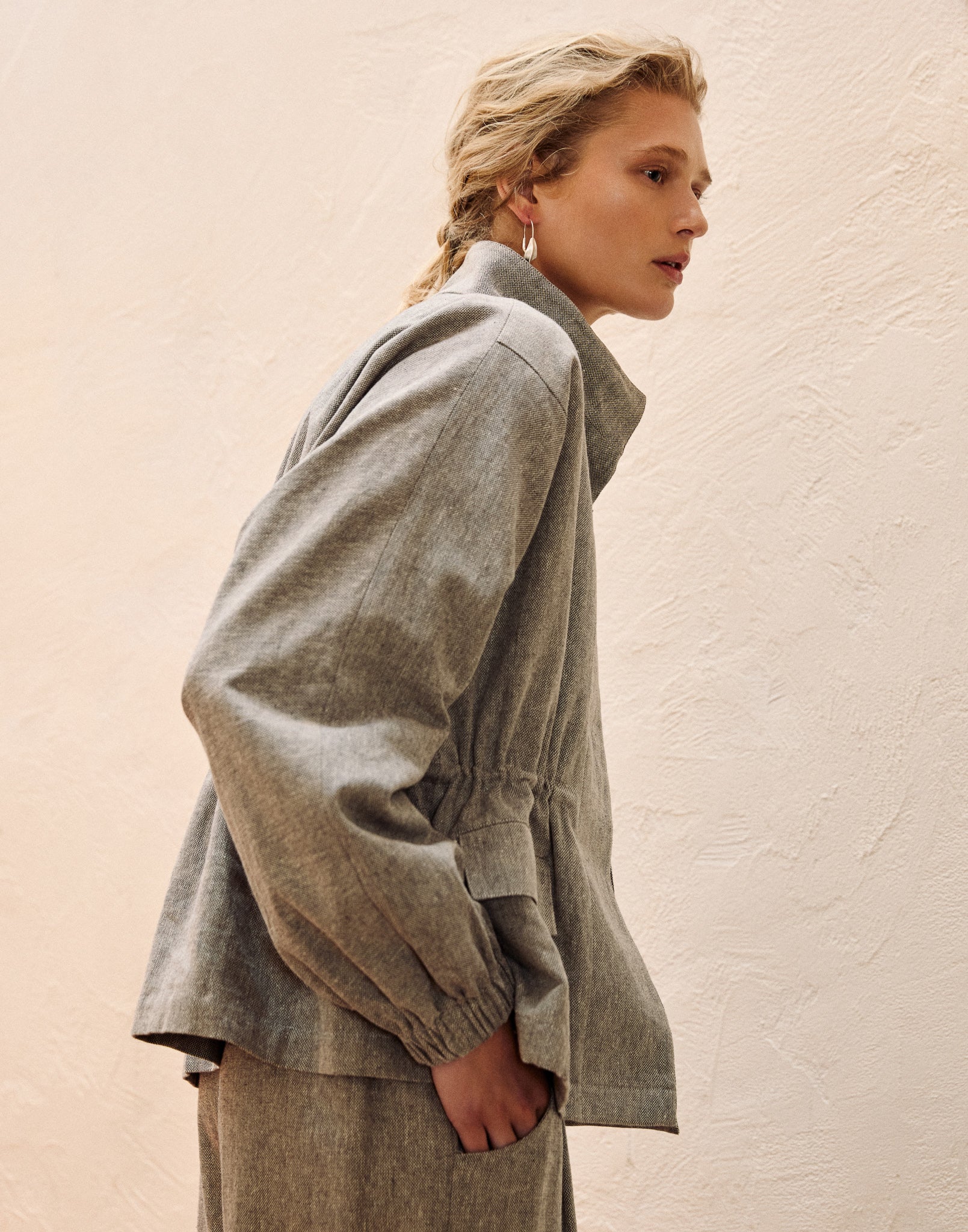 Tailored yet relaxed, the Elk Citte Jacket is the kind of smart layering piece you'll reach for again and again. Crafted from a soft cotton-linen blend in a textured grey marle, it blends modern minimalism with quiet structure—perfect for trans-seasonal layering.