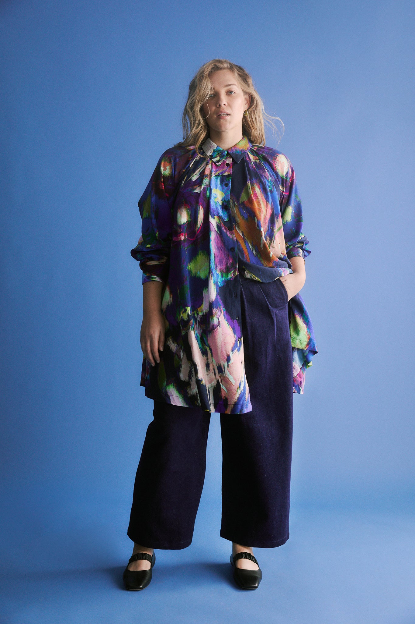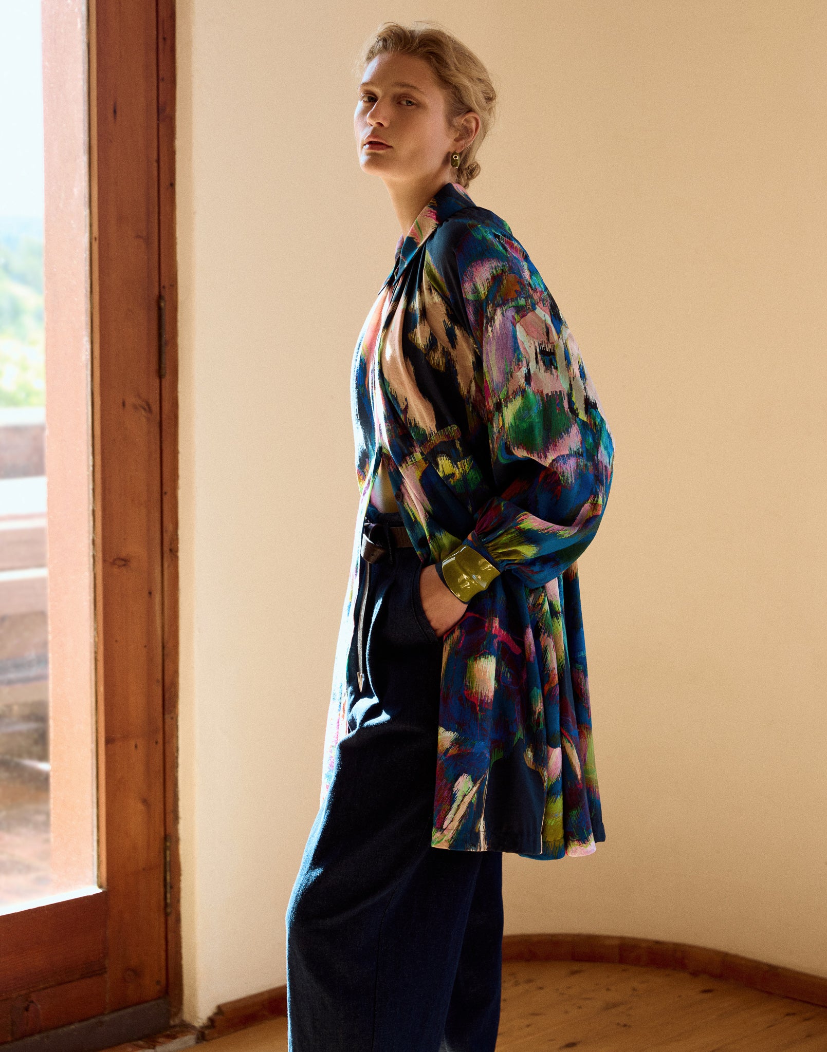 Artful and expressive, the Moda Dress in Elk’s exclusive Vaara Print delivers striking colour in a silhouette that feels timeless and relaxed. With its gathered neckline, billowed sleeves and button-down front, this versatile piece can be worn belted for soft structure or loose for a more fluid, tunic-style shape.
