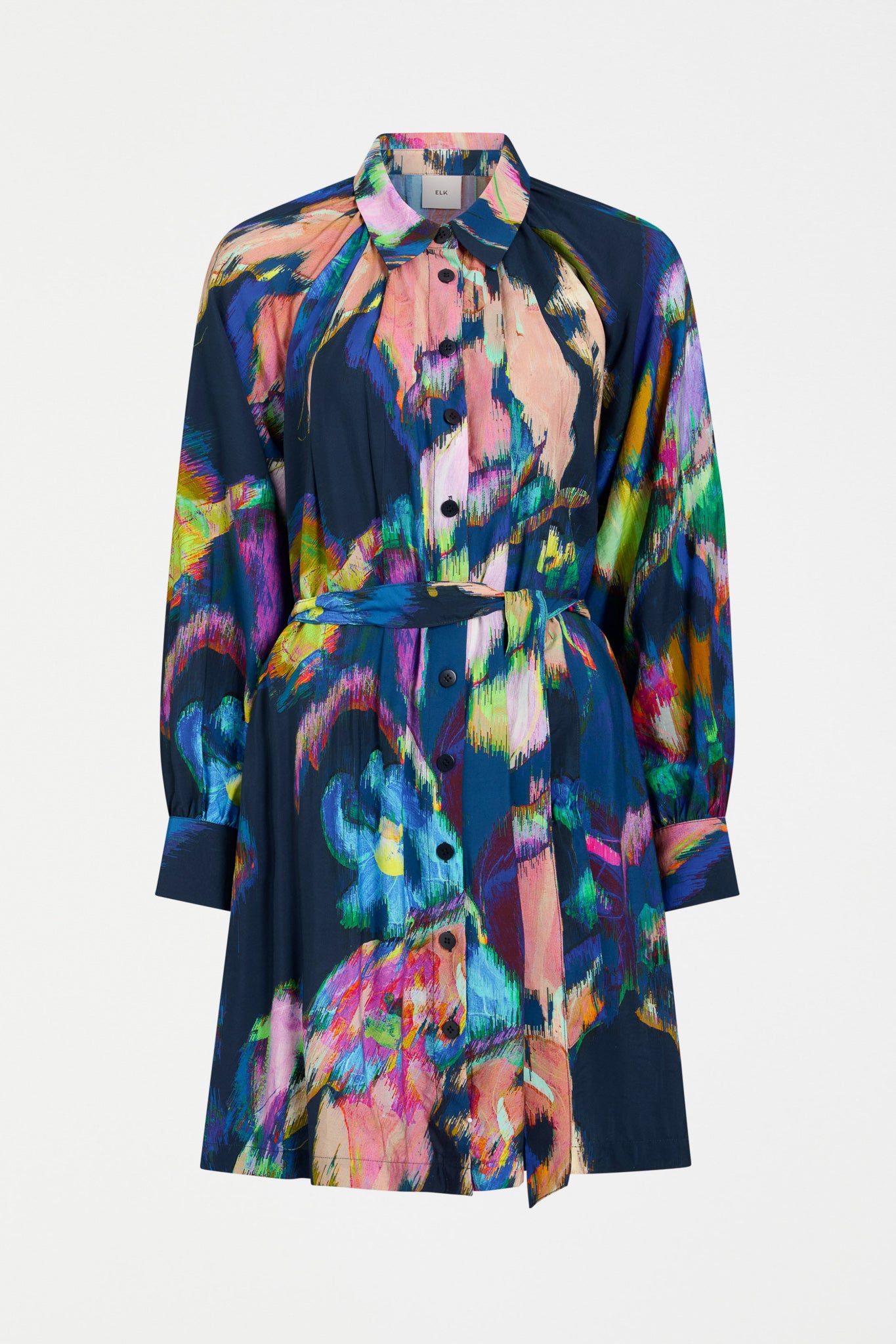 Artful and expressive, the Moda Dress in Elk’s exclusive Vaara Print delivers striking colour in a silhouette that feels timeless and relaxed. With its gathered neckline, billowed sleeves and button-down front, this versatile piece can be worn belted for soft structure or loose for a more fluid, tunic-style shape. See full product description below for fabric and fit info.