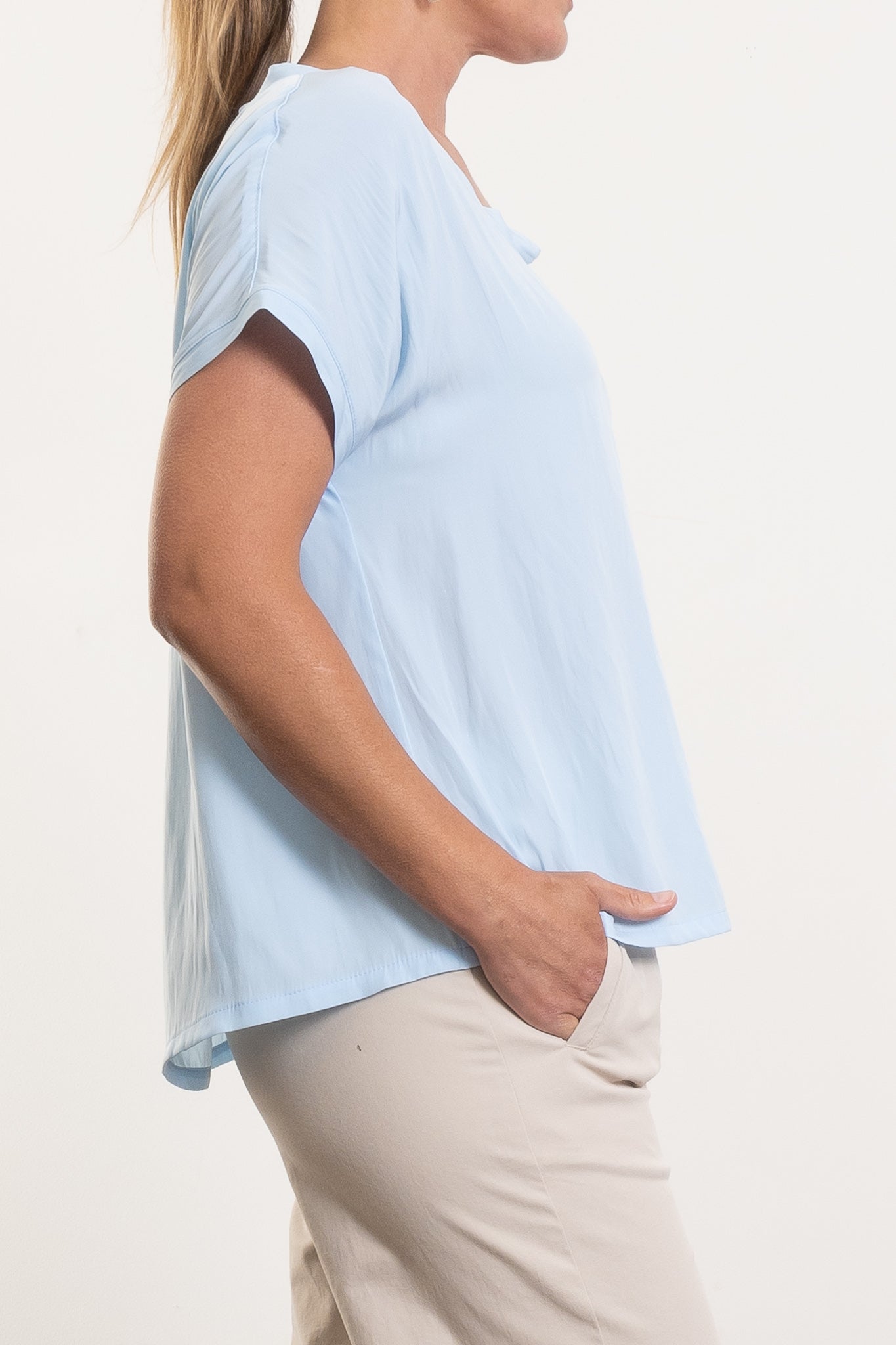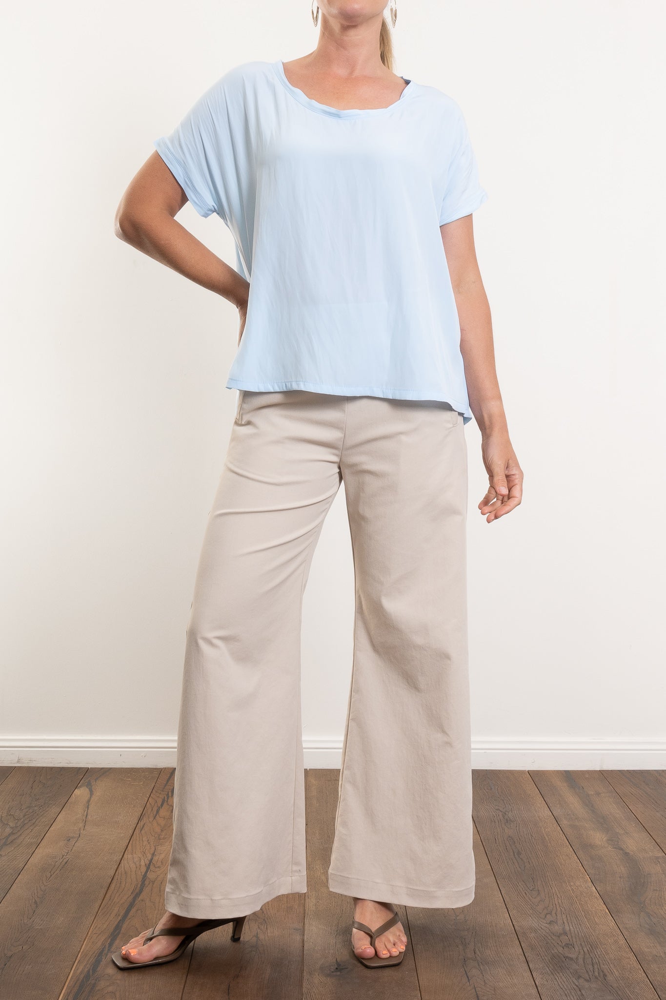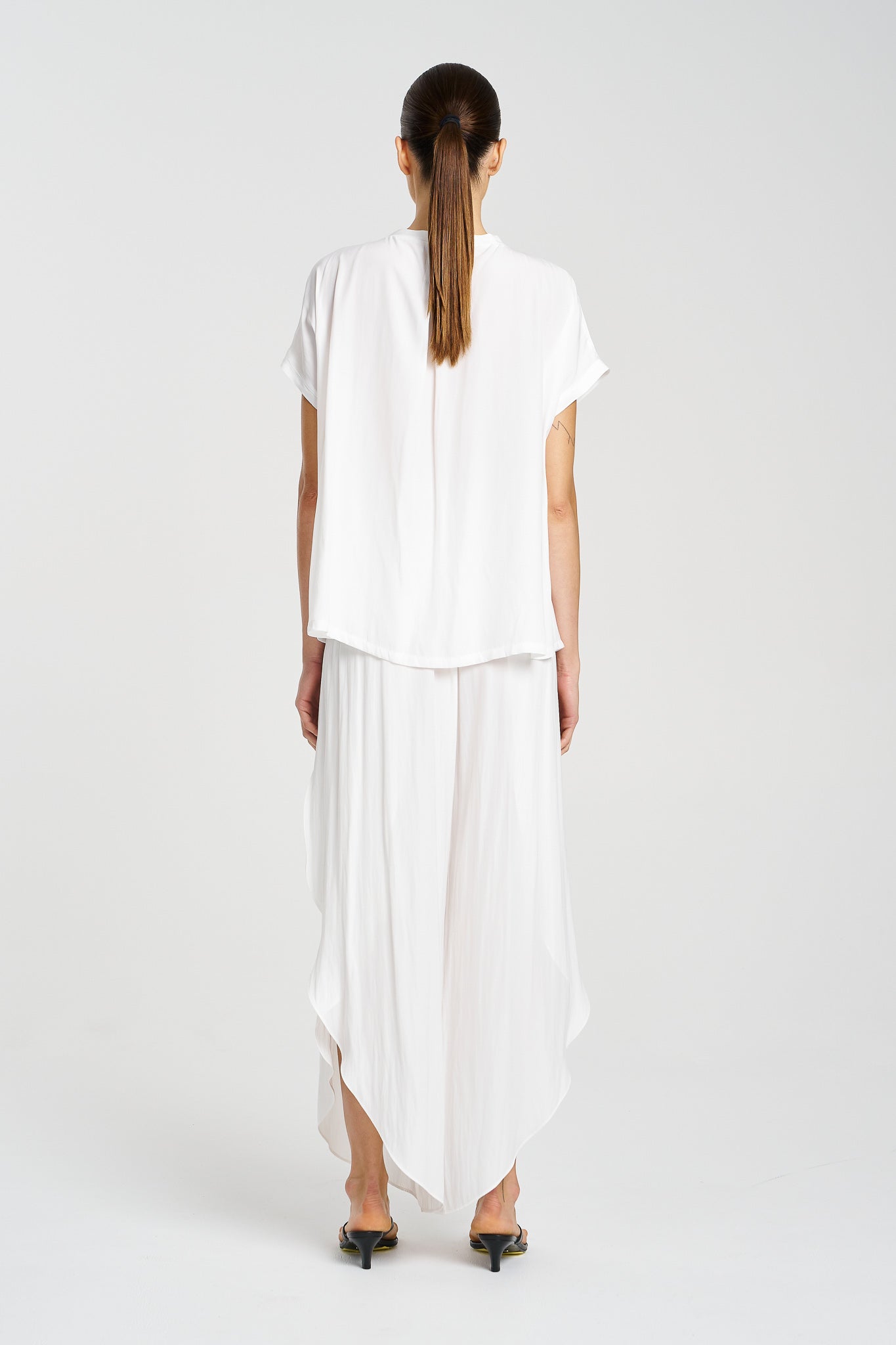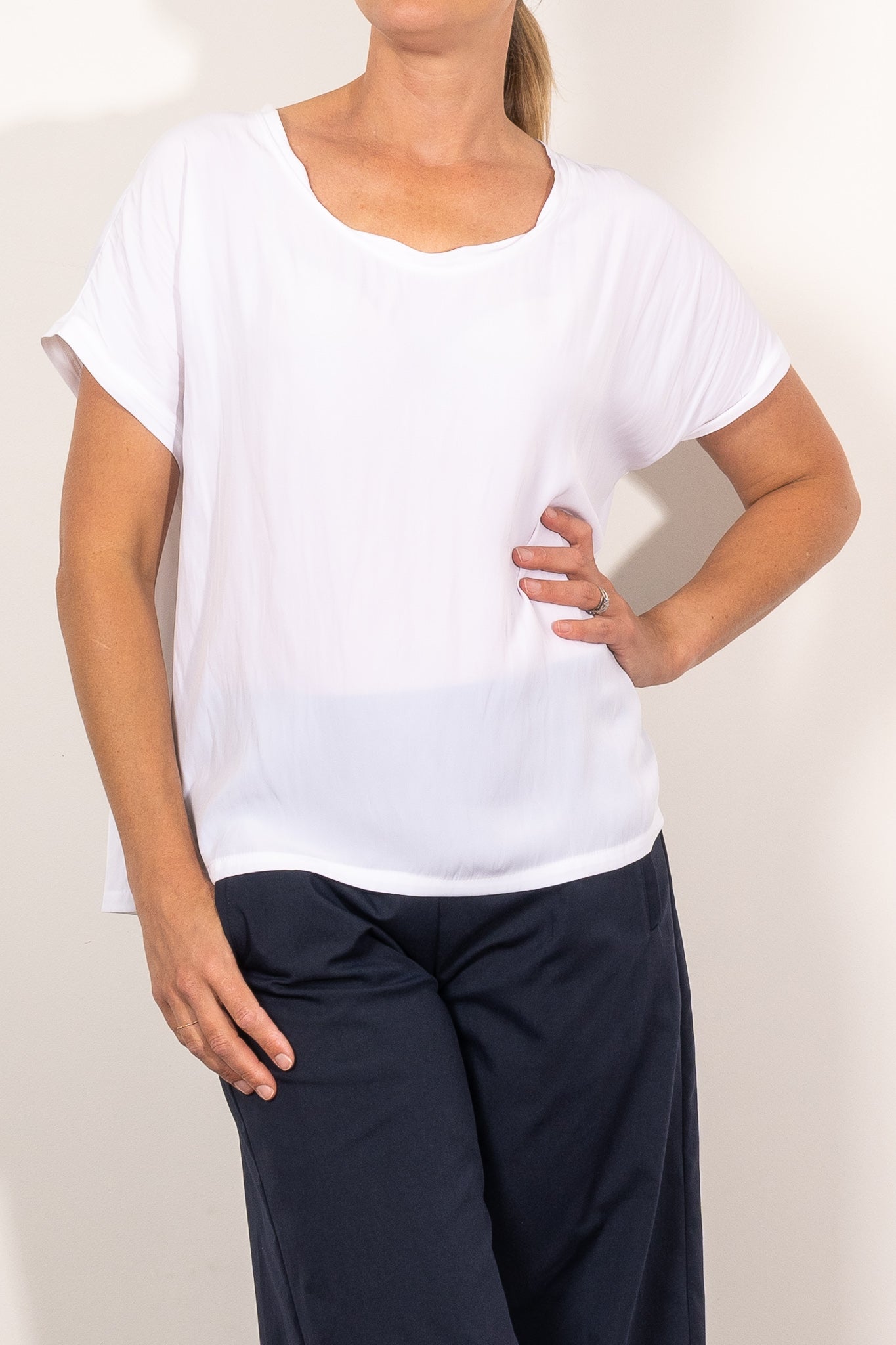Made in Australia from Mela Purdie’s signature Mache—known for its soft drape and subtle sheen—the Cruise Shell is the kind of piece you’ll reach for again and again. The relaxed fit, cap sleeves and gently curved hem make it beautifully easy to wear, whether you’re styling it loose over pants or layering it under a jacket. Available in crisp White, classic Black, and Vista—a soft, pale blue that flatters all skin tones.