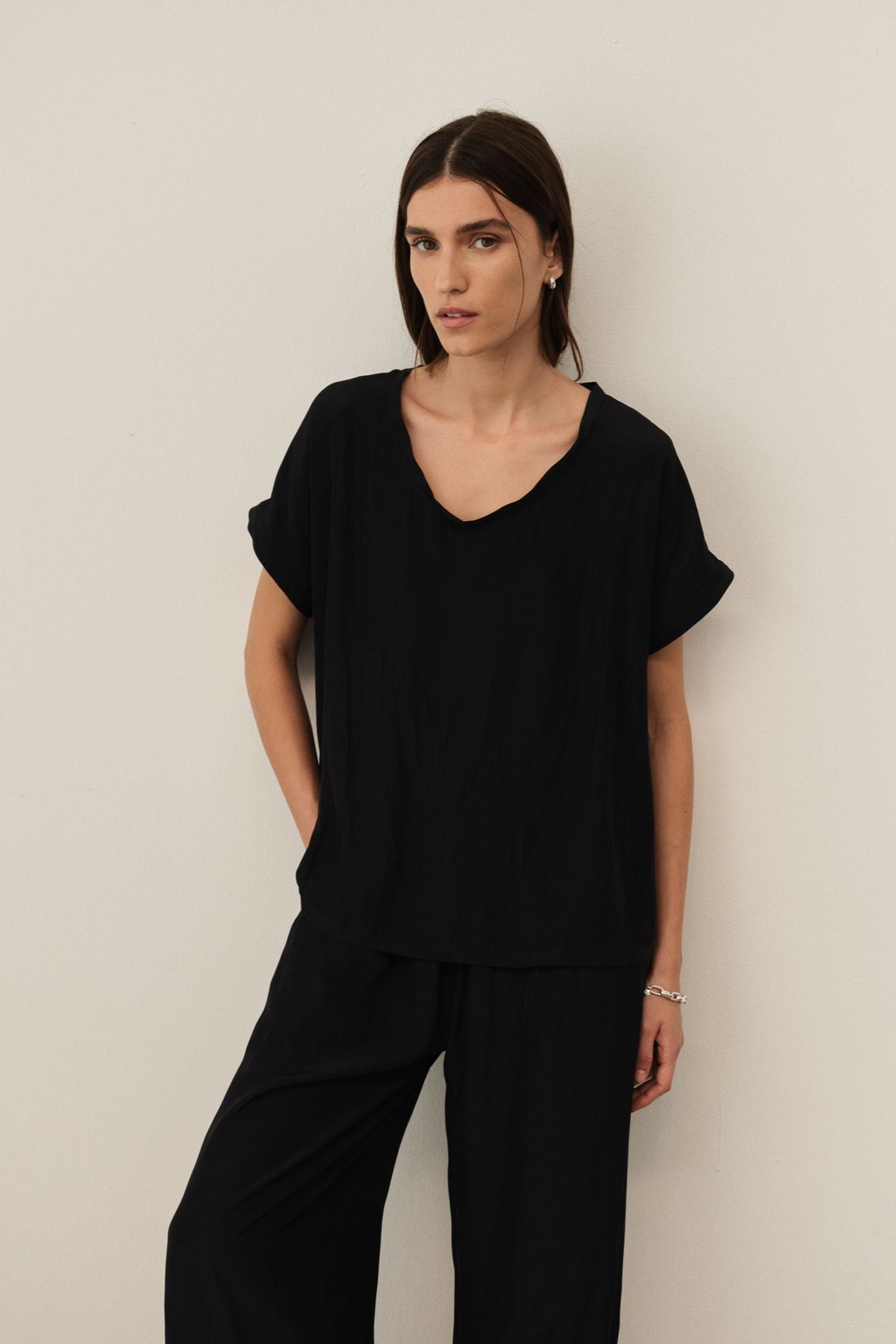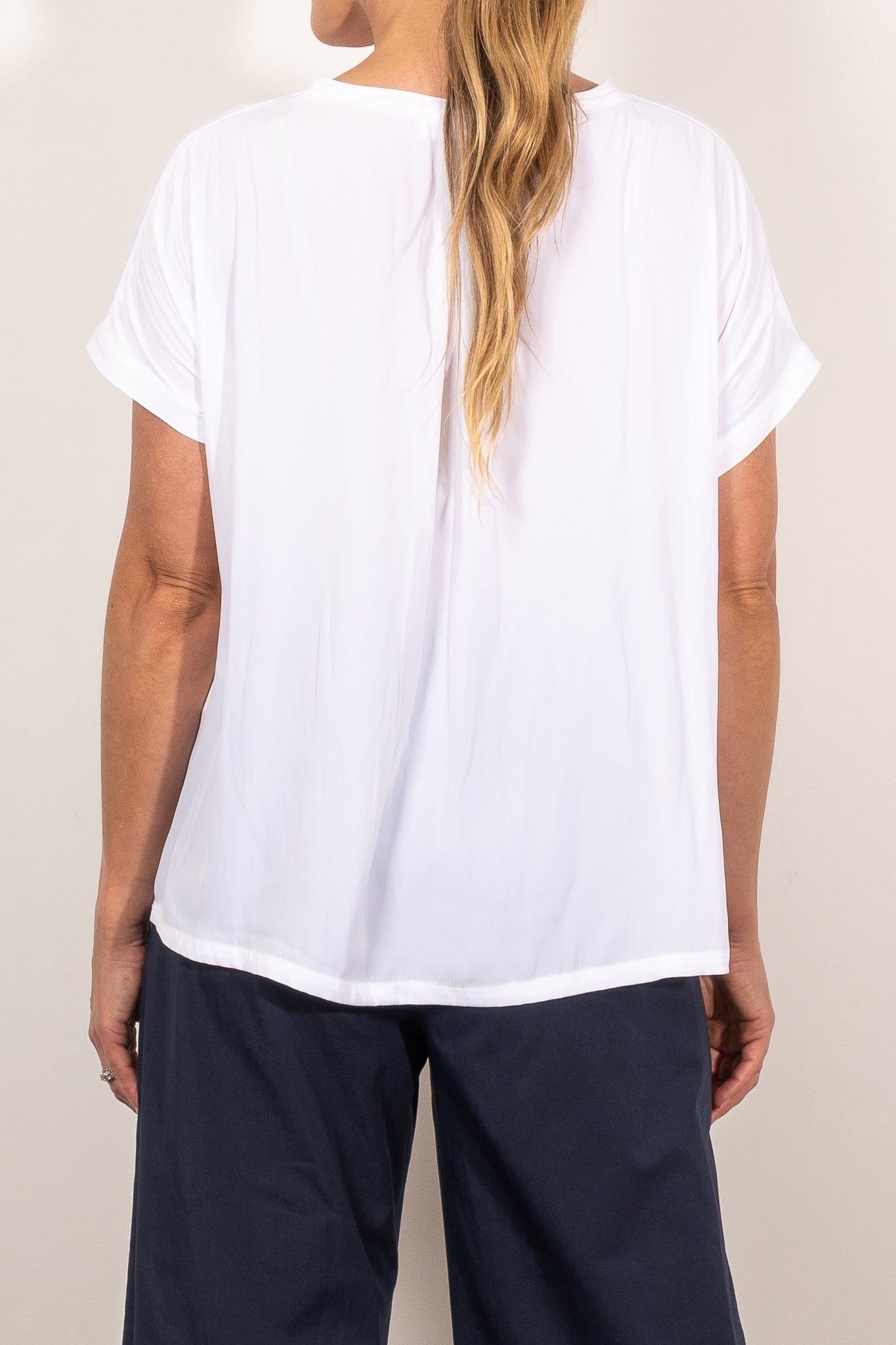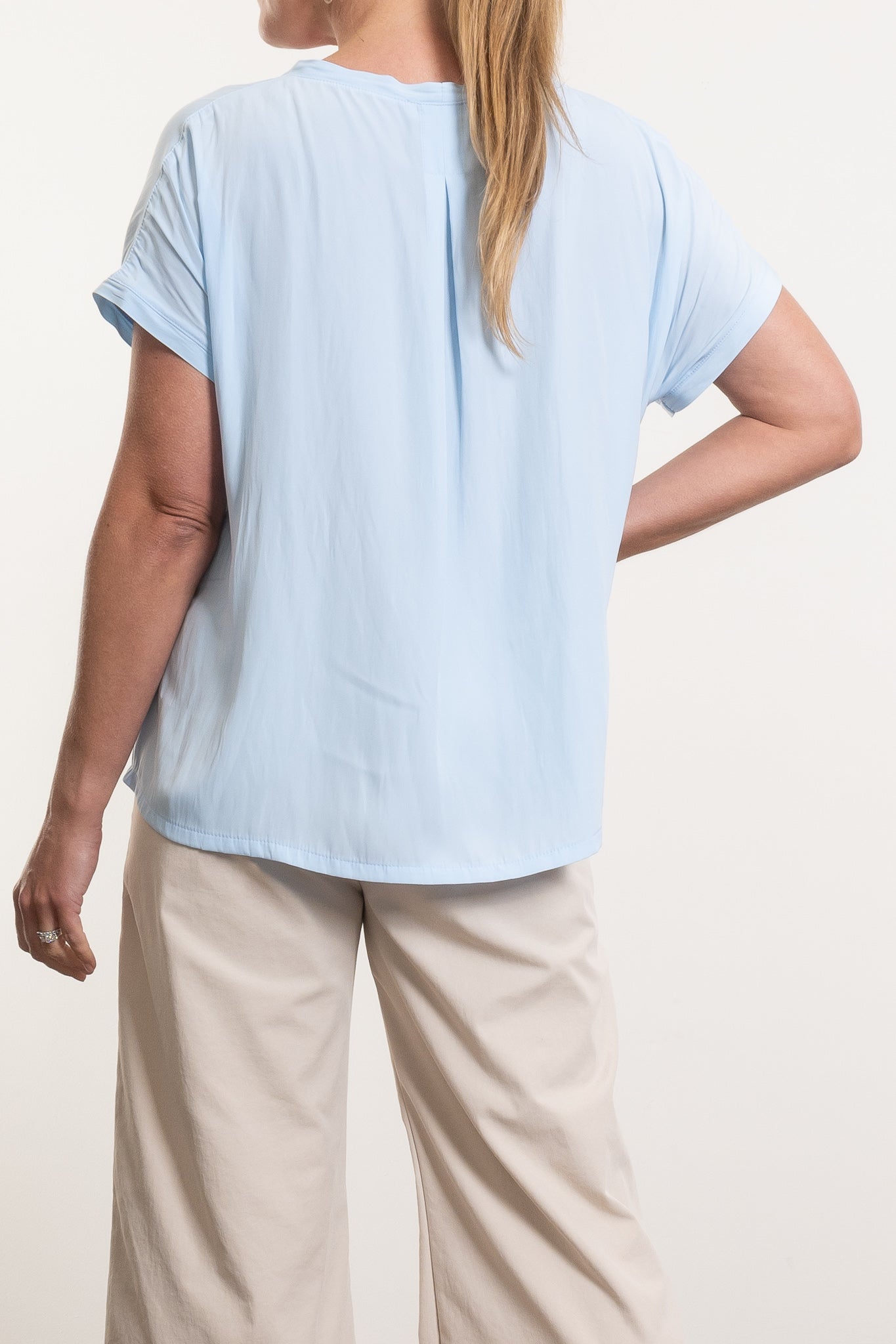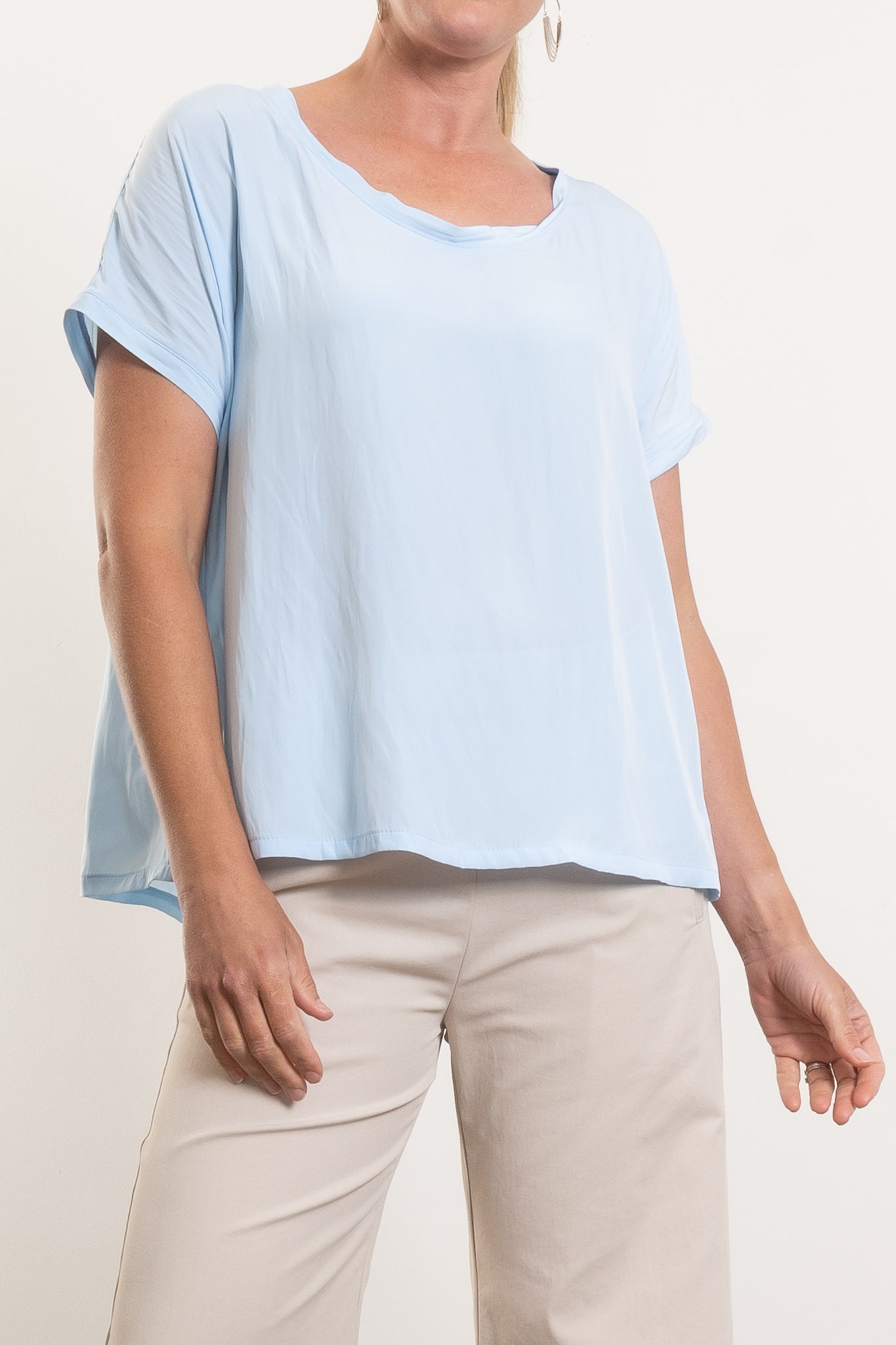 Made in Australia from Mela Purdie’s signature Mache—known for its soft drape and subtle sheen—the Cruise Shell is the kind of piece you’ll reach for again and again. The relaxed fit, cap sleeves and gently curved hem make it beautifully easy to wear, whether you’re styling it loose over pants or layering it under a jacket. Available in crisp White, classic Black, and Vista—a soft, pale blue that flatters all skin tones.