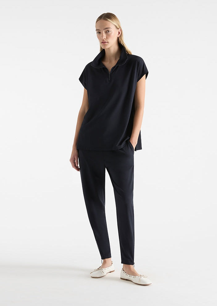 Elevate your wardrobe with the Mela Purdie Half Zip Shell Jersey. Crafted in their signature Mid weight Matte Jersey, it skims and flatters your figure. Perfect for any occasion, its half zip detailing and high stand collar add a touch of elegance. Made in Australia for quality and style.