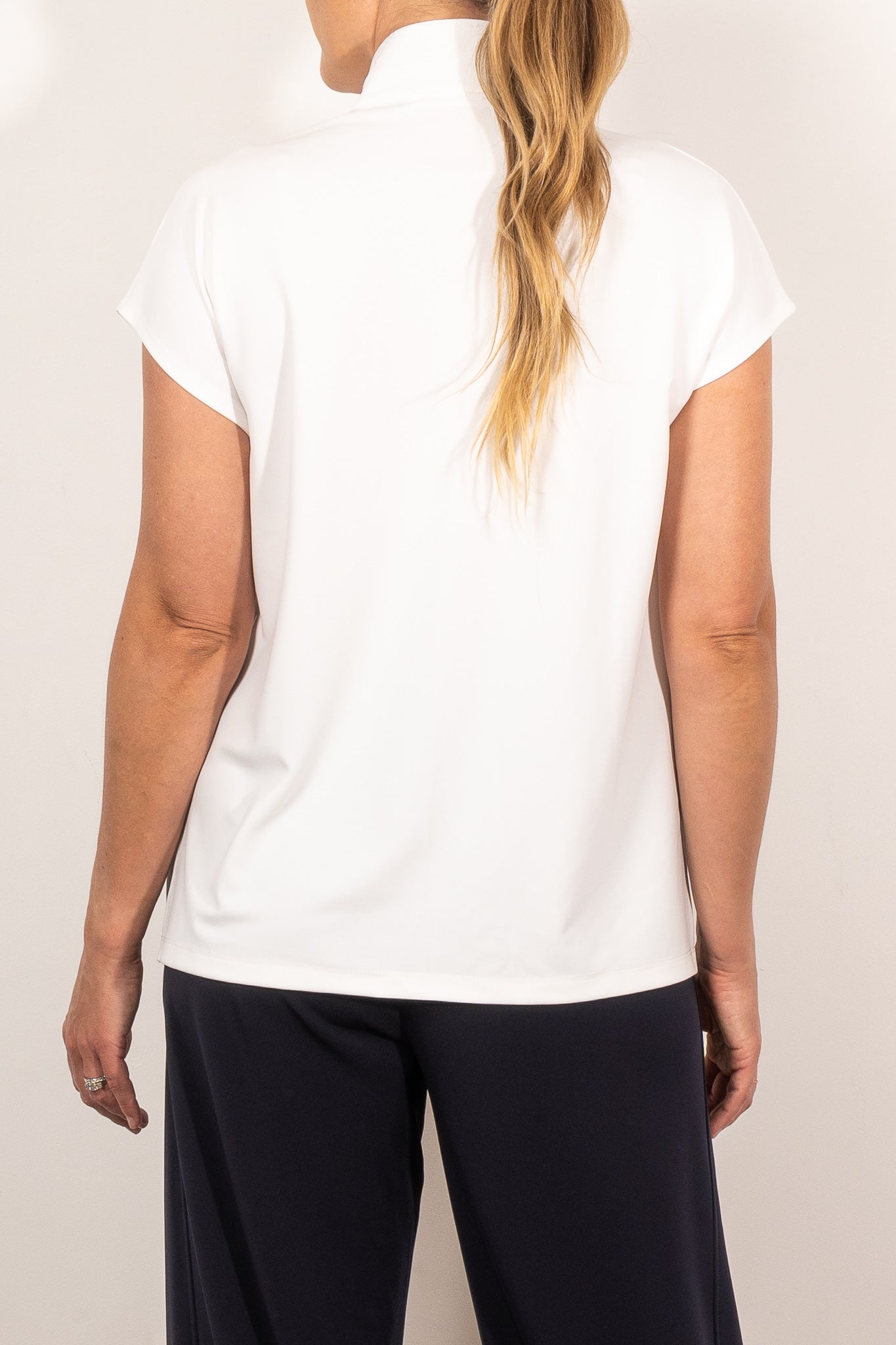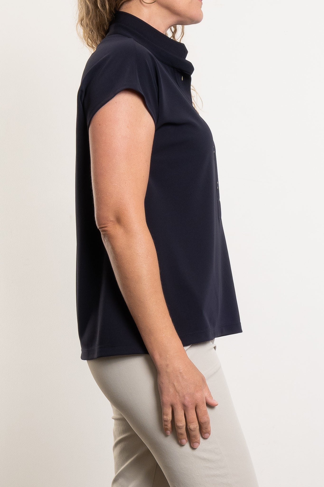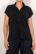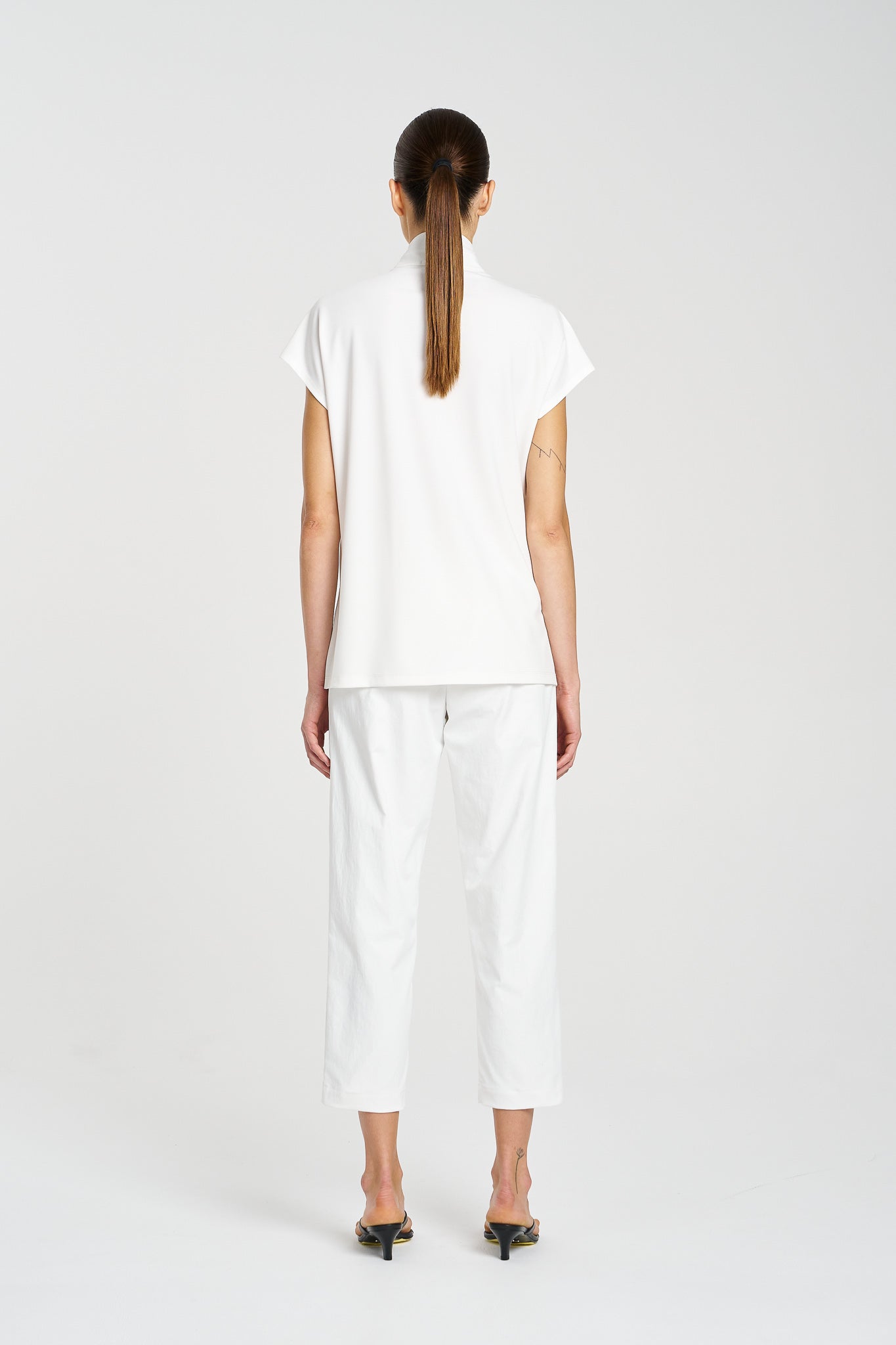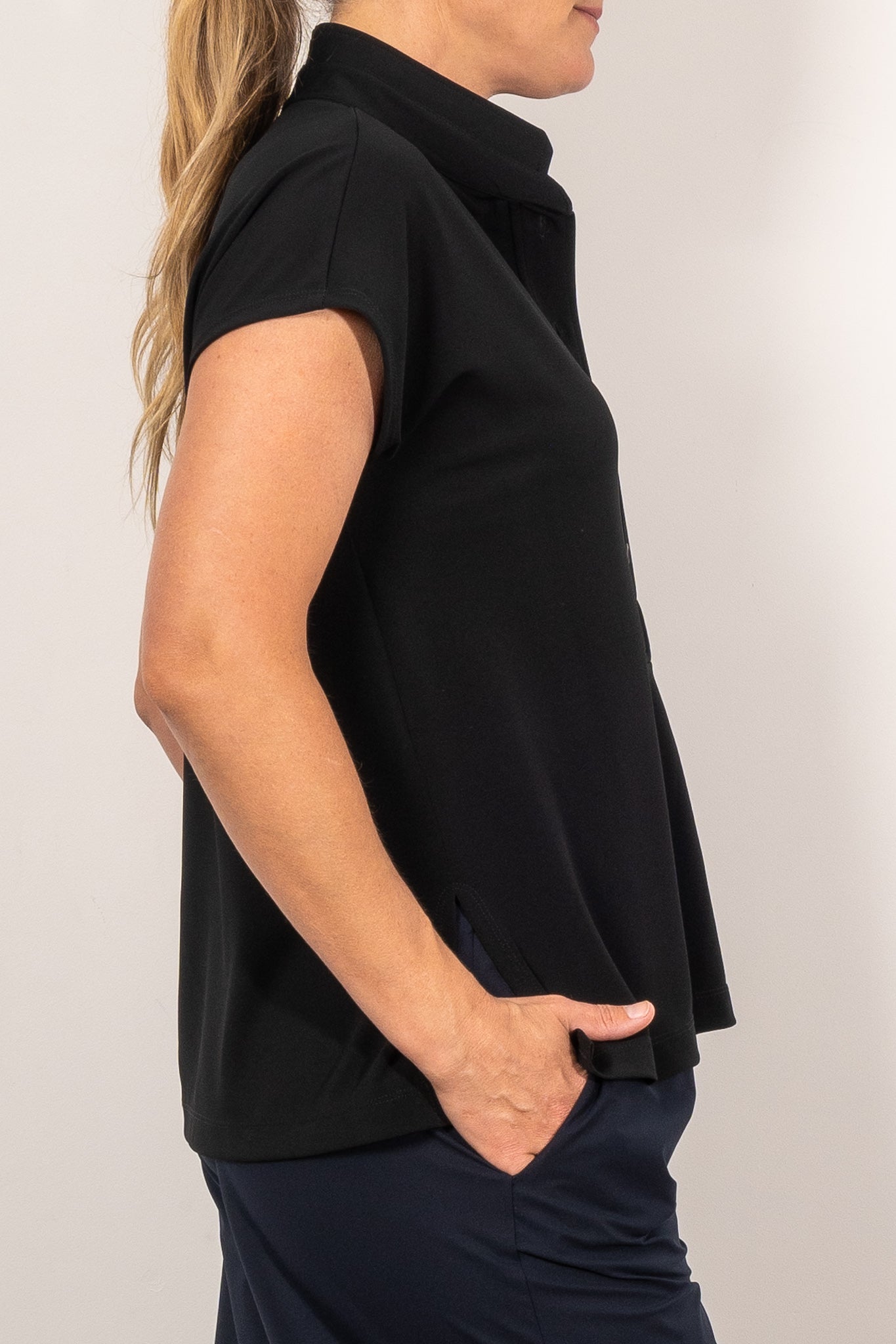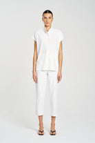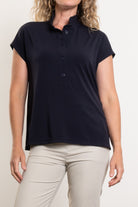 The Henly Tank is crafted from Mela Purdie’s Powder Knit—lightweight, crease-resistant and softly structured with a matte finish. The stand collar and tab button detailing add a tailored touch, while the relaxed silhouette and cap sleeves keep it easy and wearable. Designed to skim the body with gentle drape, this is the kind of top that works across seasons and settings—layered under jackets, worn loose over pants, or tucked in for a more polished look. Available in Cream, Navy, and Black.