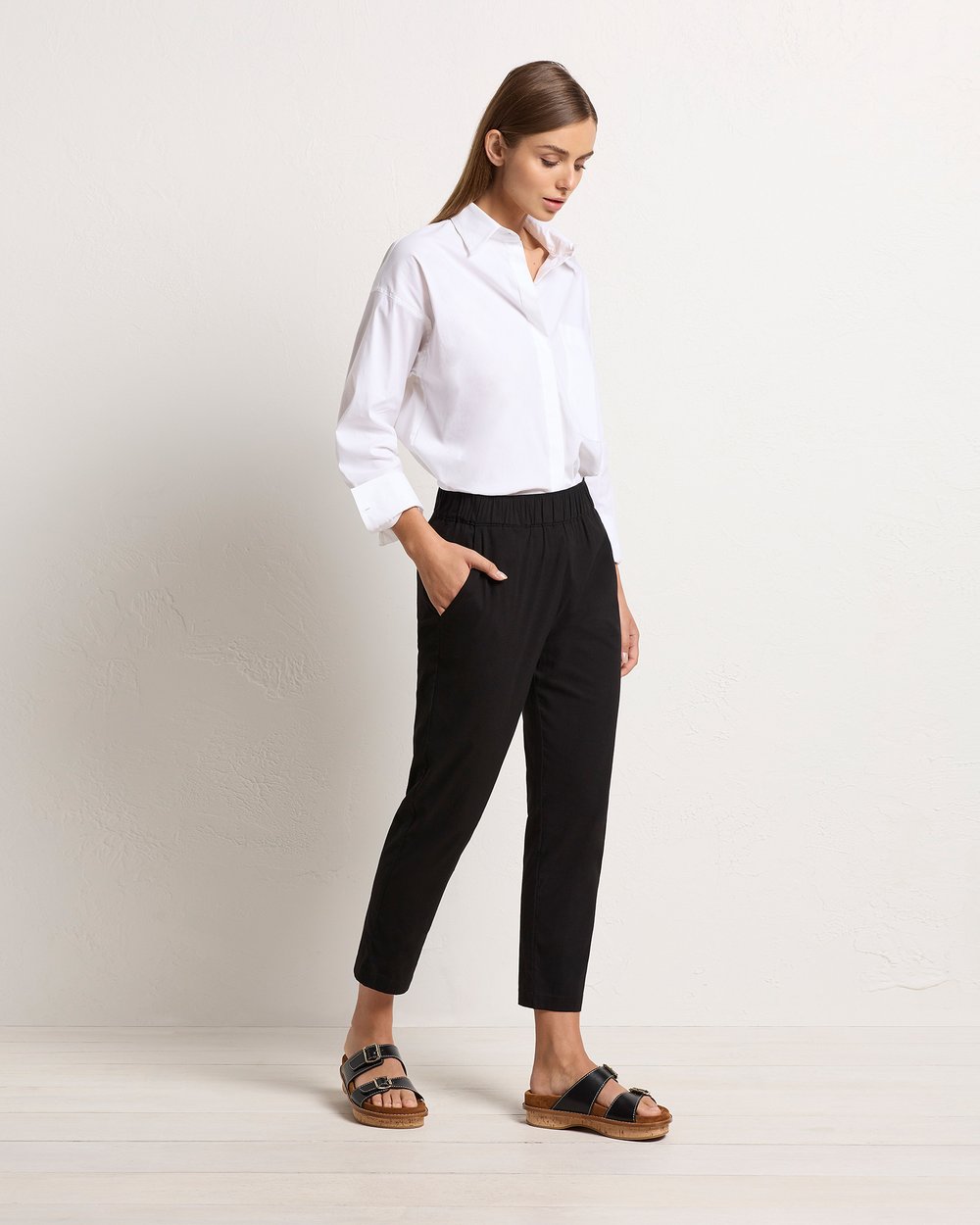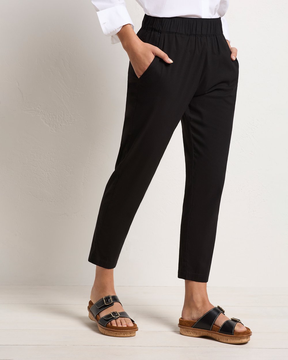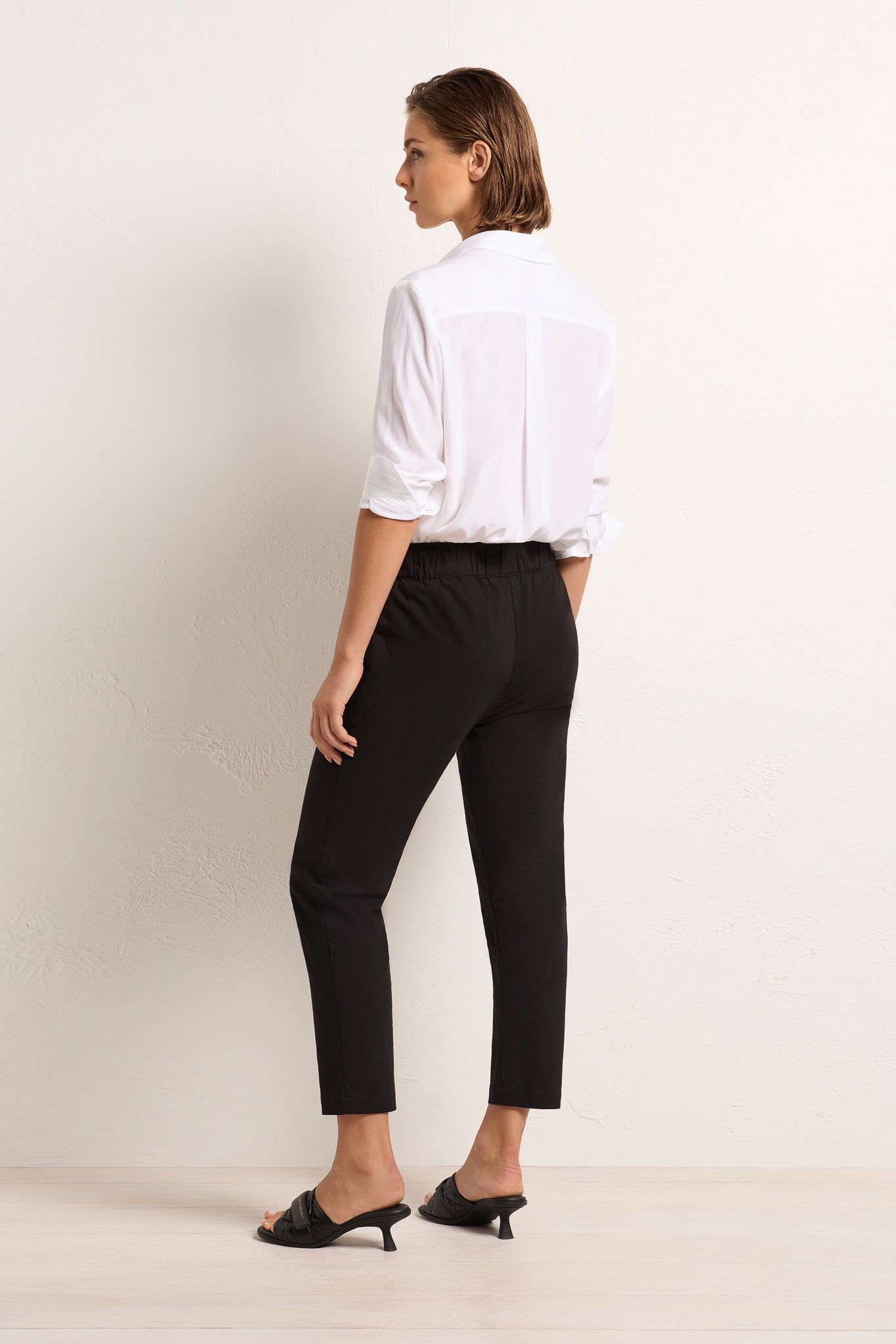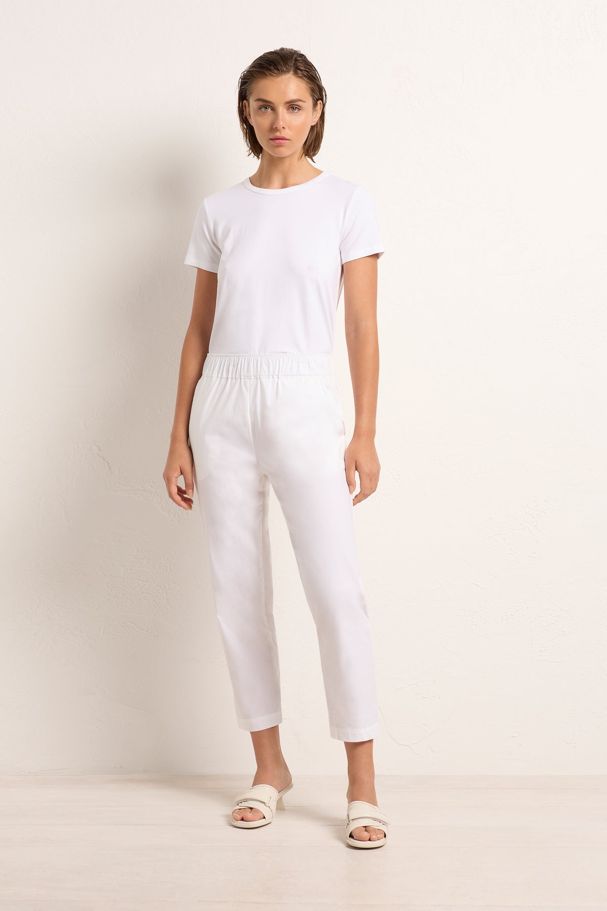 The Nomad Pant is made from Mela’s Microprene fabric. The Nomad pant comes in a 7/8 length and features an elasticated waistband and two slit pockets in a slim fit. This fabric has a smooth finish and a tapered cut making it super flattering on any figure. The Nomad is an incredibly versatile and comfortable pant for all seasons but is particularly suited to spring /summer thanks to its incredible light, breathable stretch cotton fabrication.