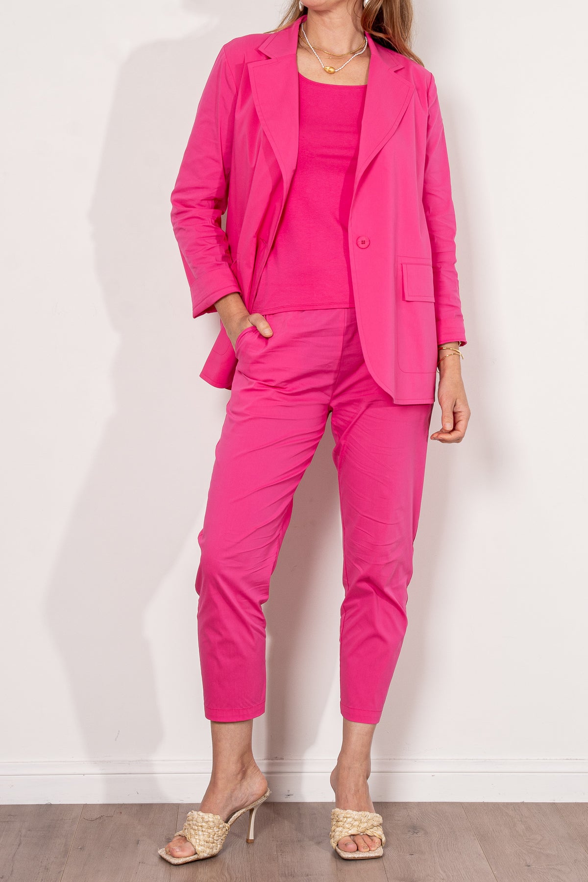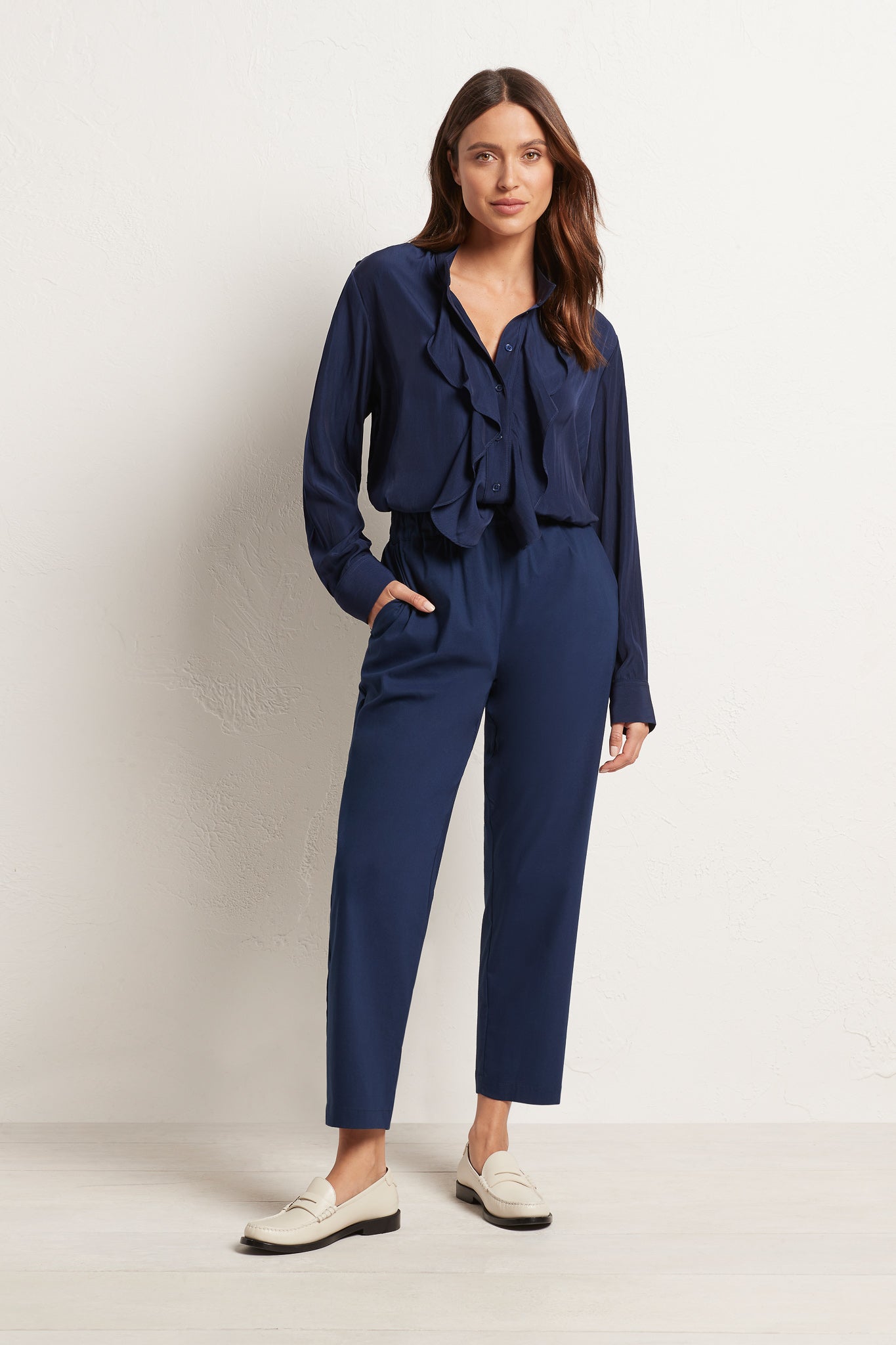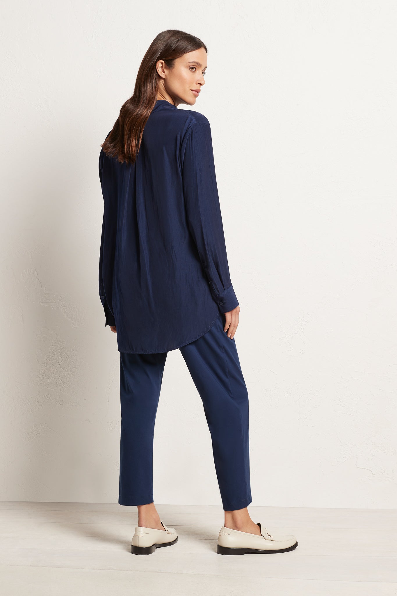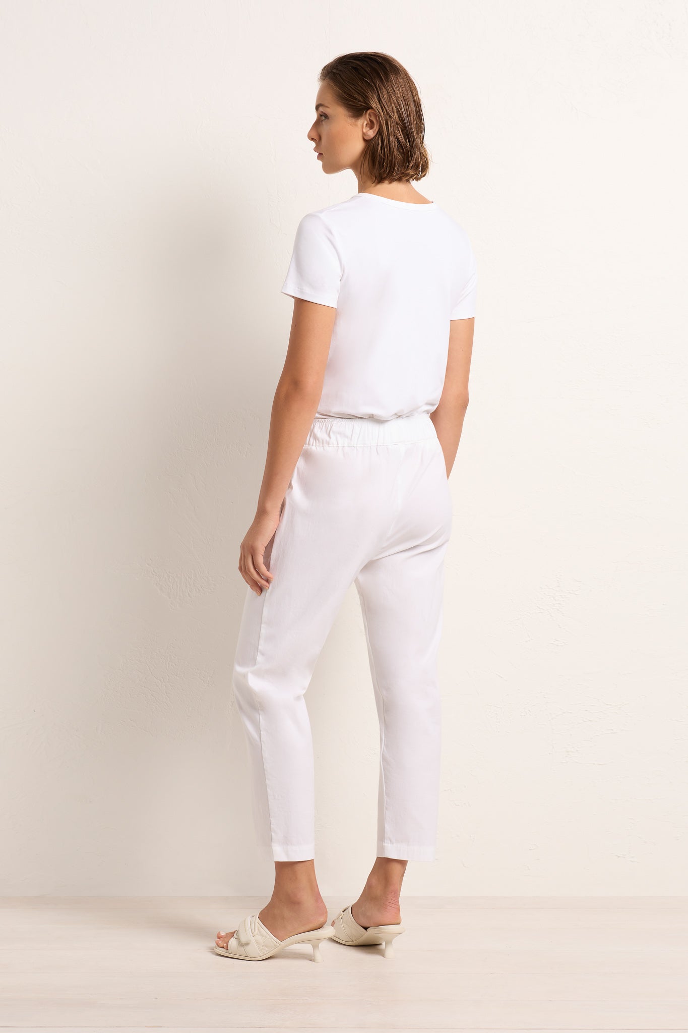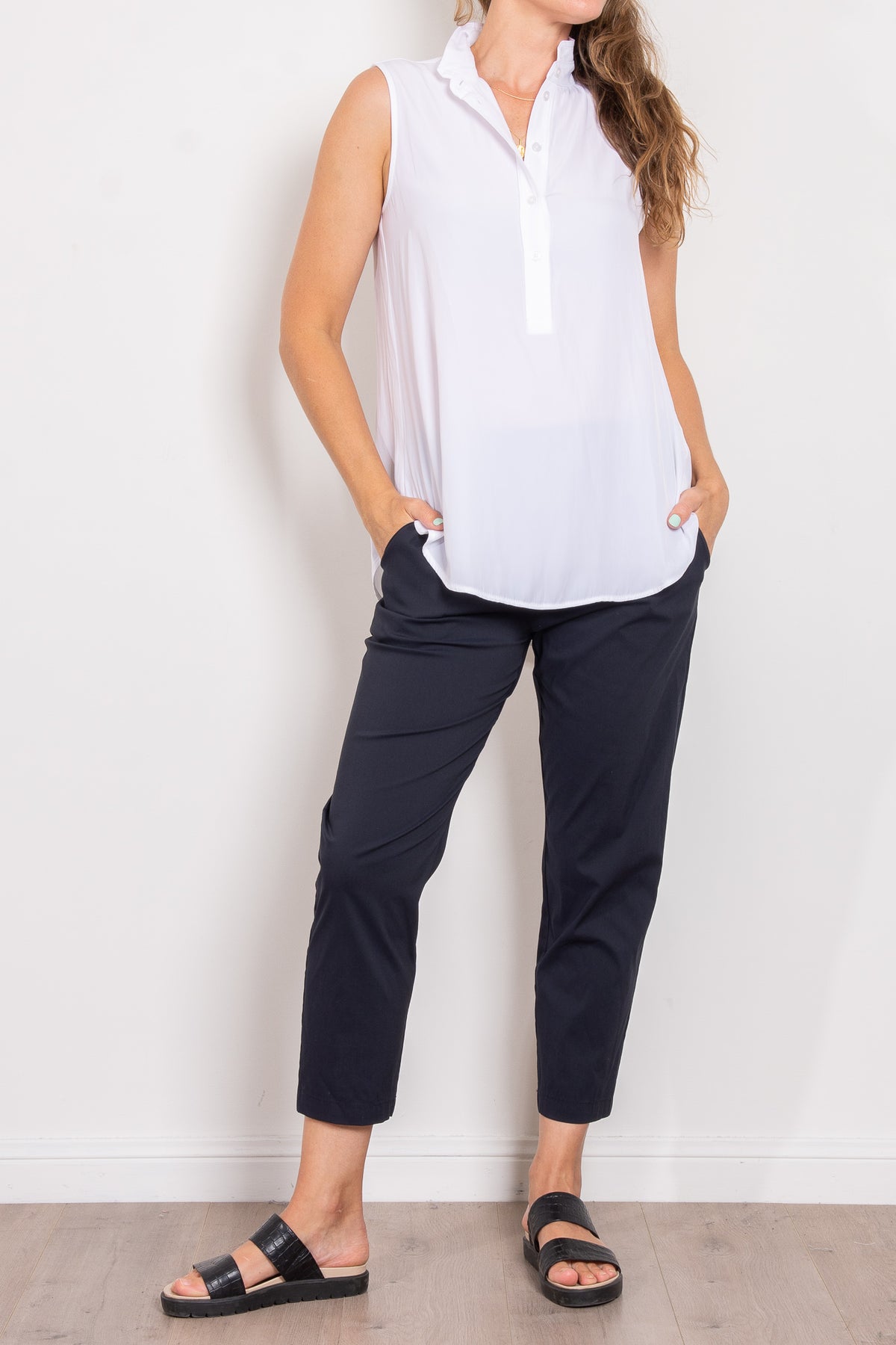 The Nomad Pant is made from Mela’s Microprene fabric. The Nomad pant comes in a 7/8 length and features an elasticated waistband and two slit pockets in a slim fit. This fabric has a smooth finish and a tapered cut making it super flattering on any figure. The Nomad is an incredibly versatile and comfortable pant for all seasons but is particularly suited to spring /summer thanks to its incredible light, breathable stretch cotton fabrication.