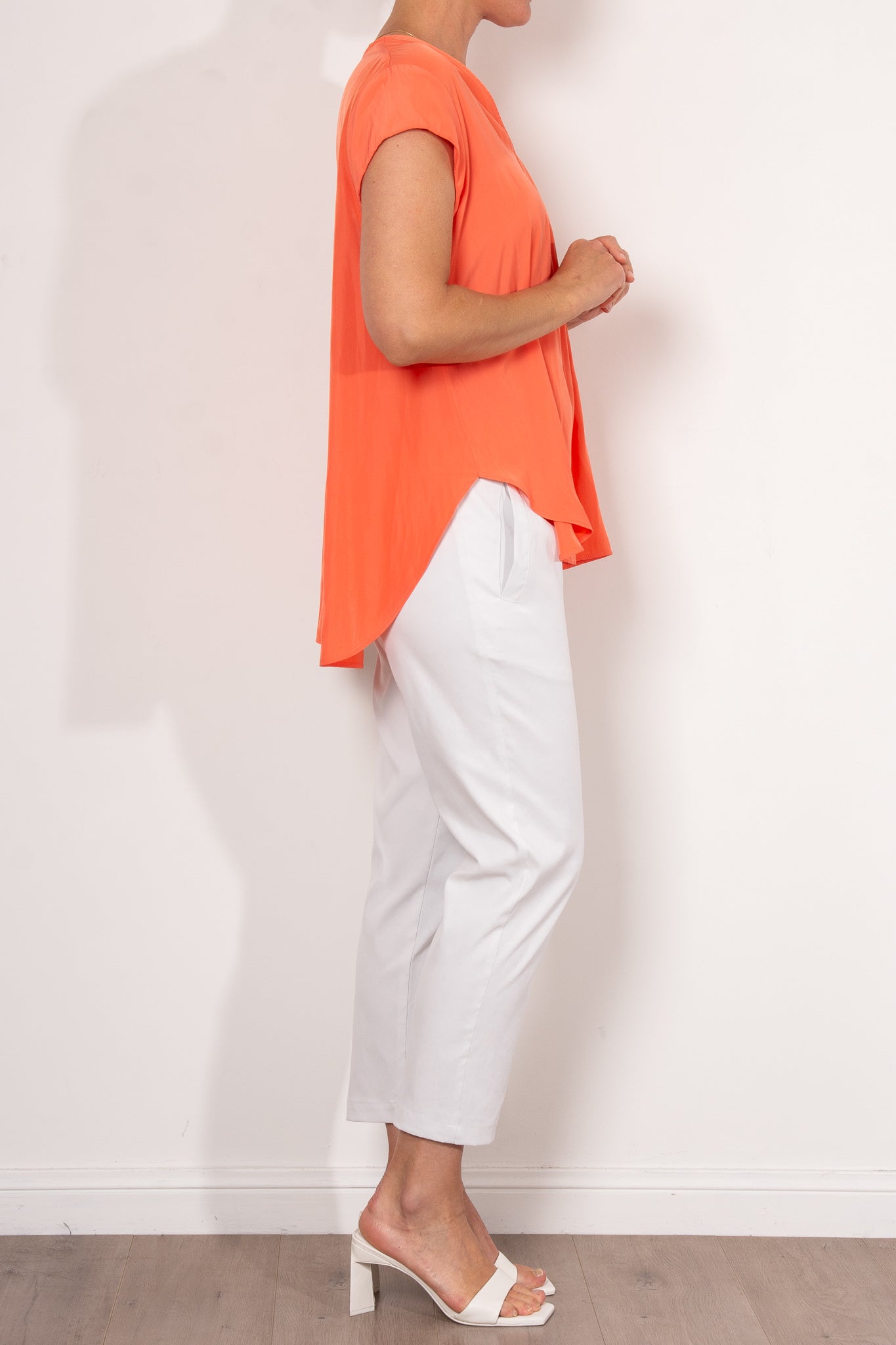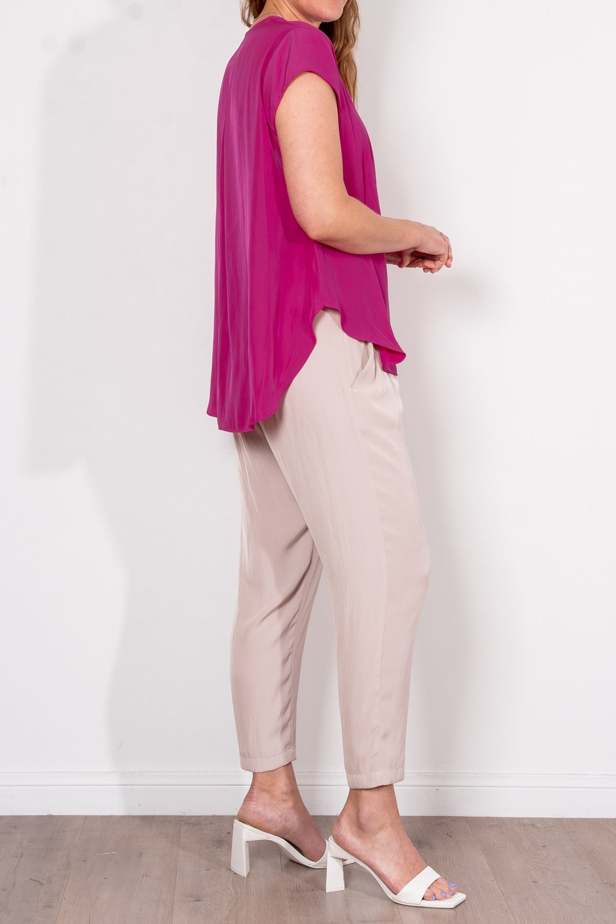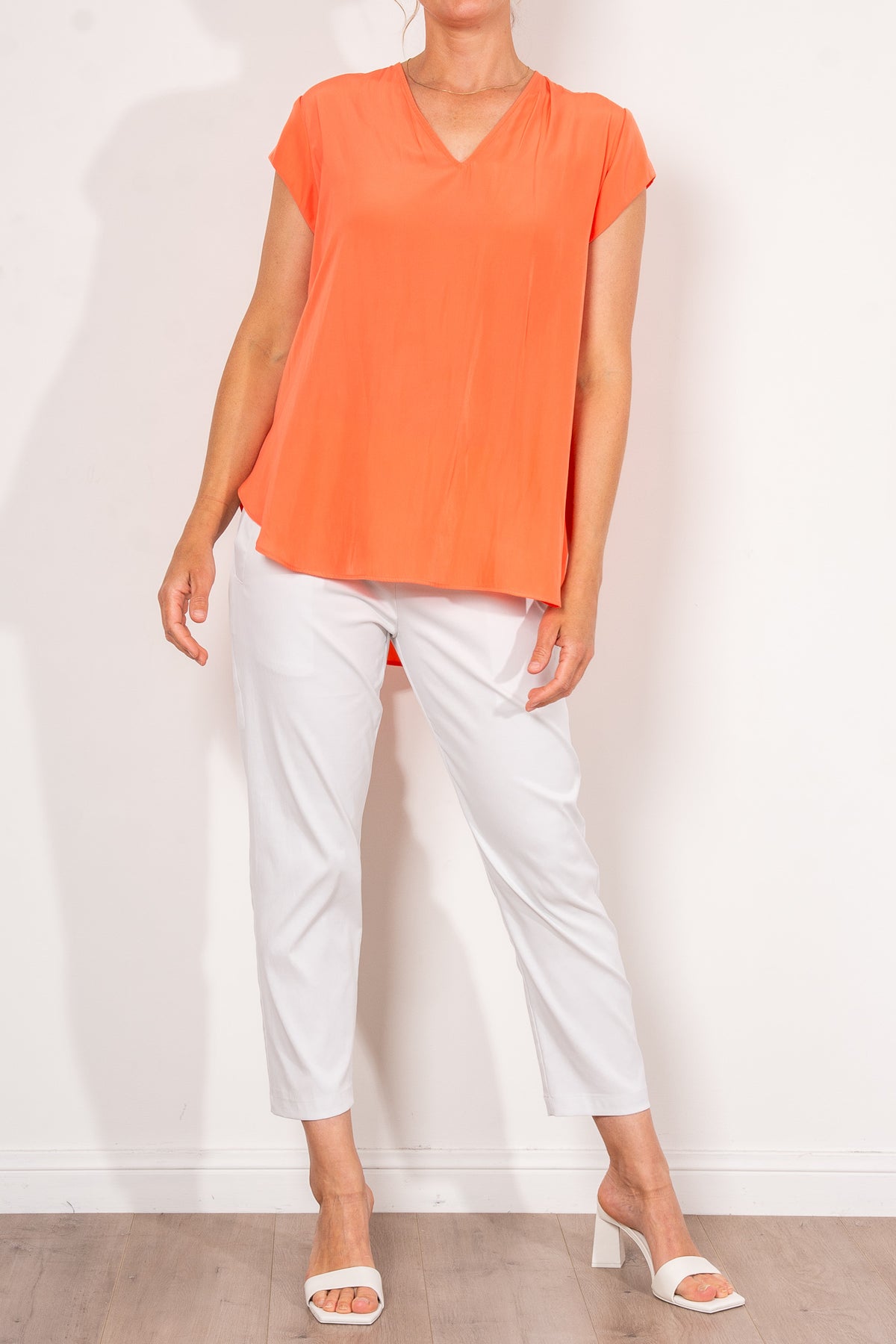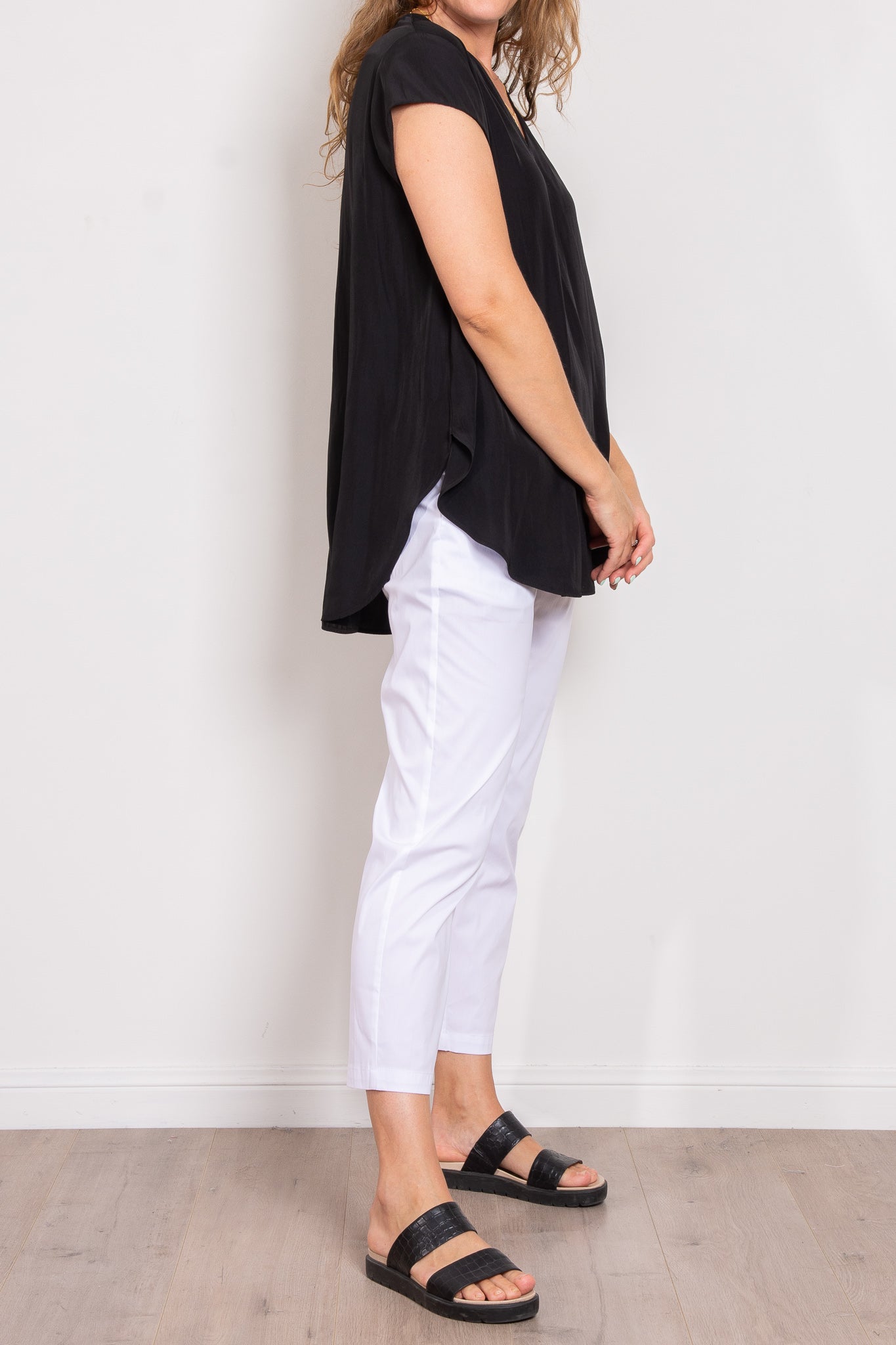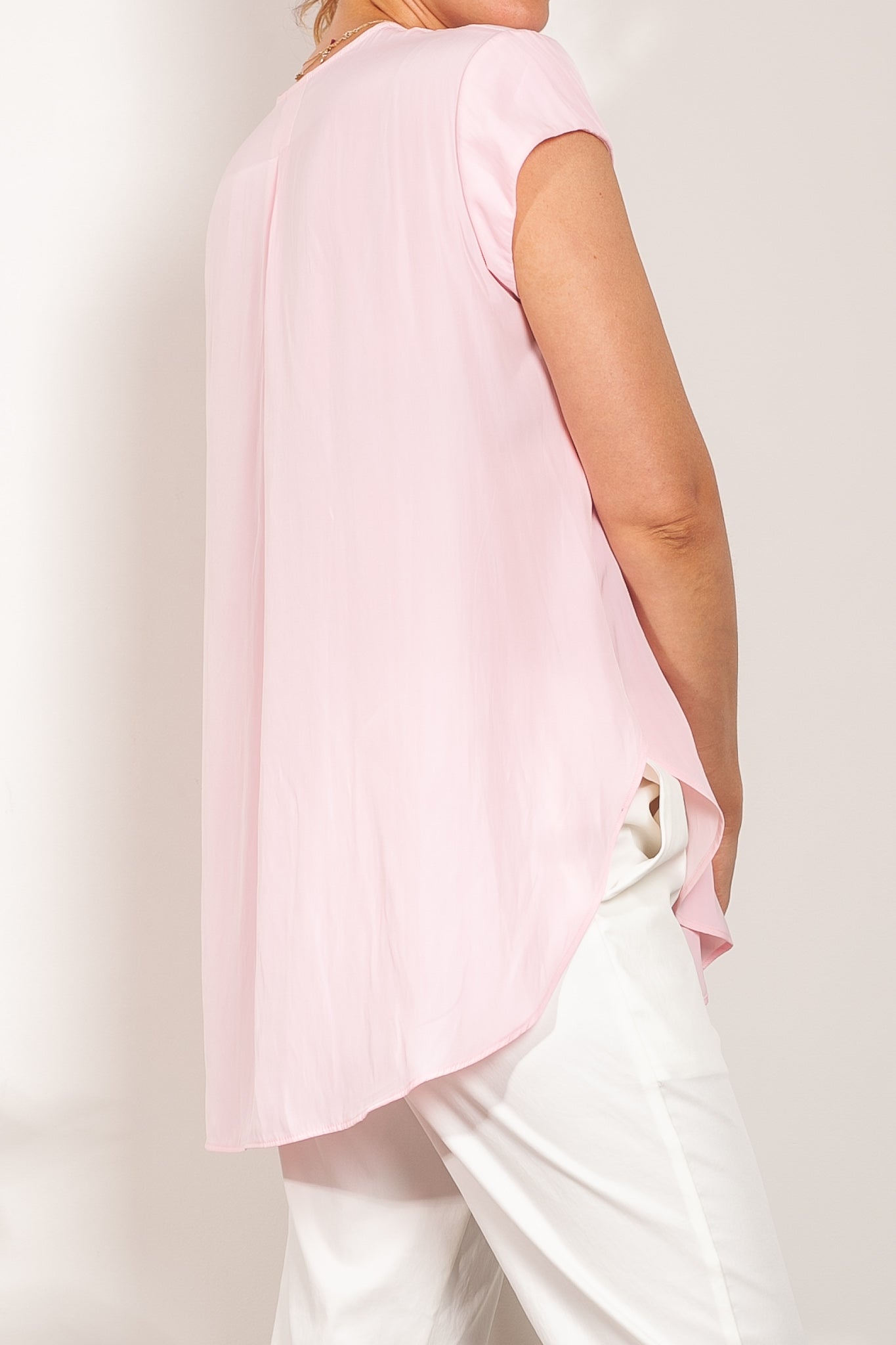 Crafted from Mela Purdie's fluid Mache, the Glide Top is cut for a slightly loose, A-line fit that is comfortable and figure flattering. With a longer length and curved hemline, this style features capped sleeves and a V Neckline.