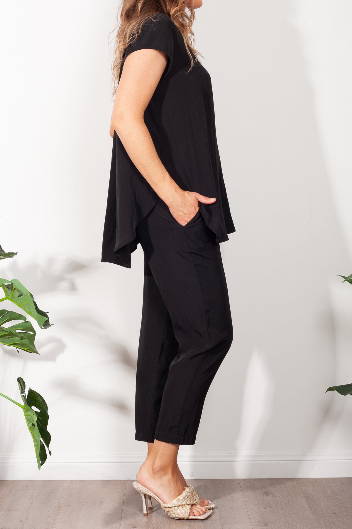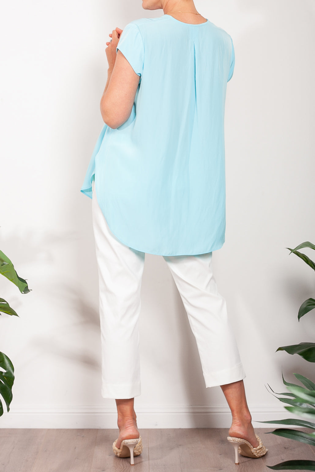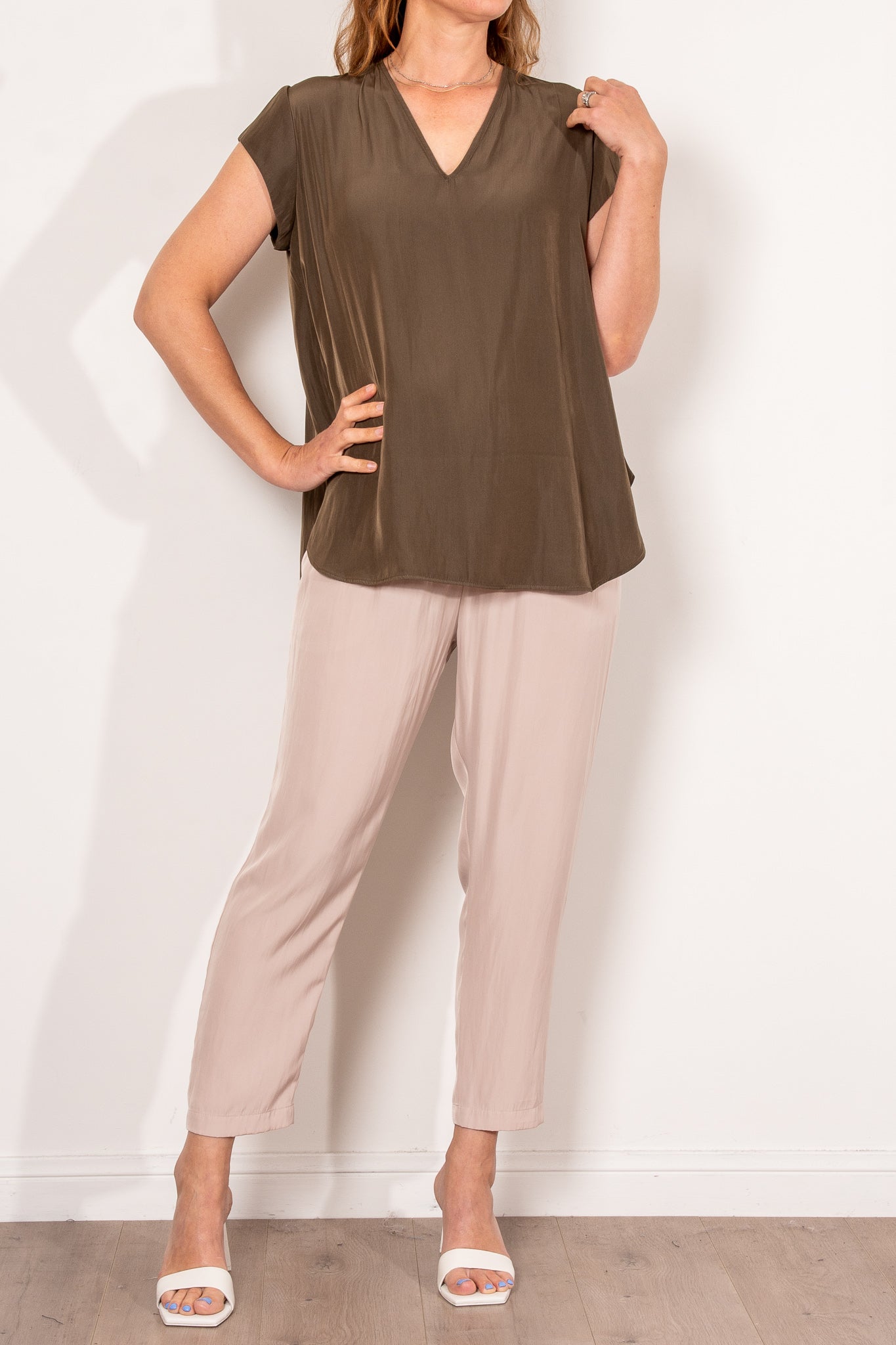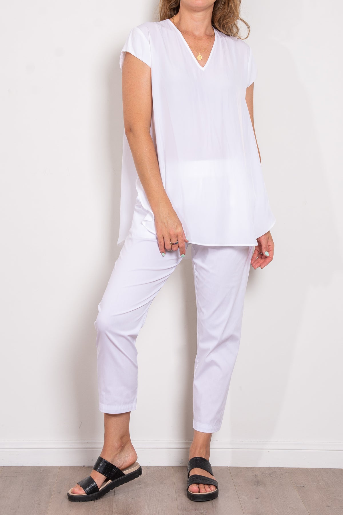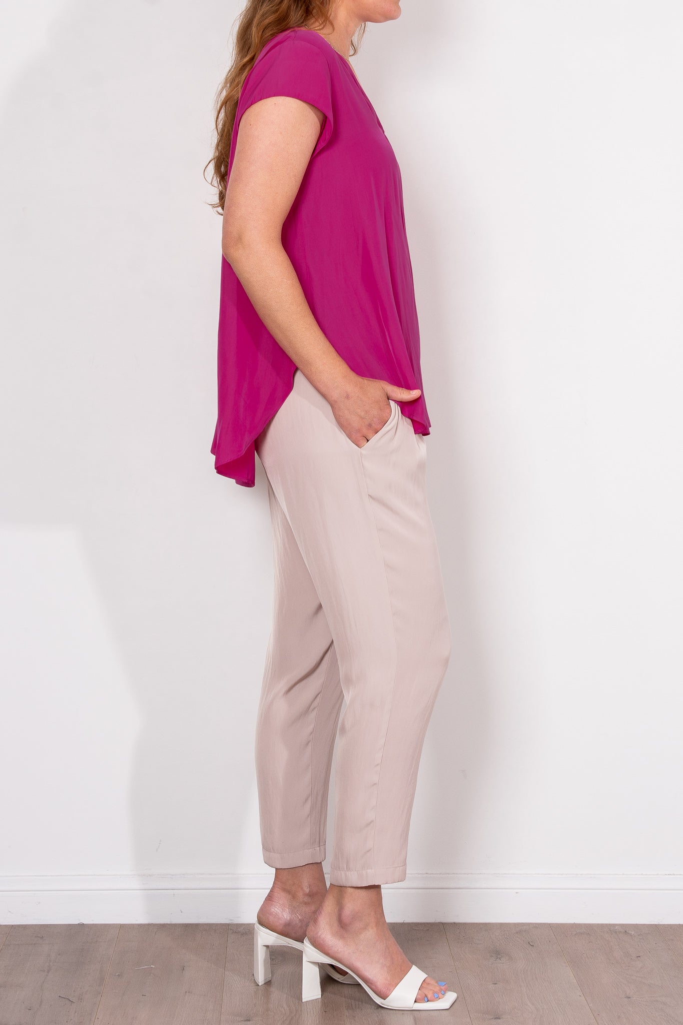Crafted from Mela Purdie's fluid Mache, the Glide Top is cut for a slightly loose, A-line fit that is comfortable and figure flattering. With a longer length and curved hemline, this style features capped sleeves and a V Neckline.