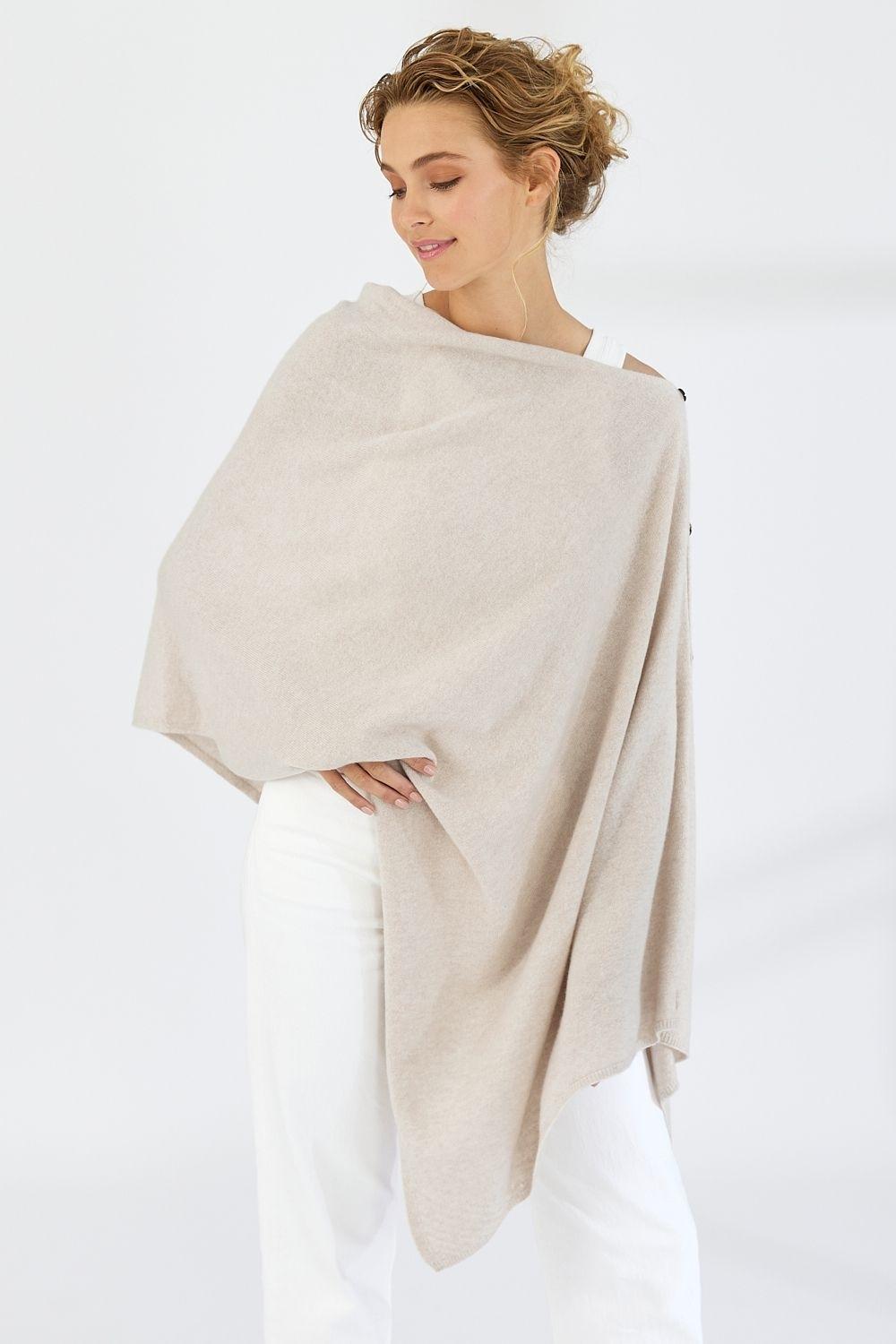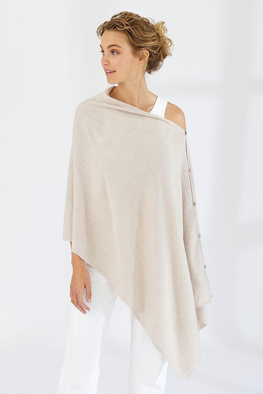 Luxuriously soft and extremely lightweight, this versatile wrap can be worn in up to 5 different ways. With signature engraved shell buttons, it can be worn both open or buttoned up. Ideal for dressing up an evening outfit or the perfect on-the-go travel companion, the Sorrento cashmere wrap is perfectly sized to fit in your handbag or hand luggage.