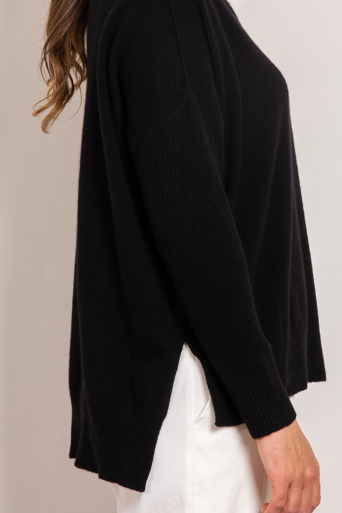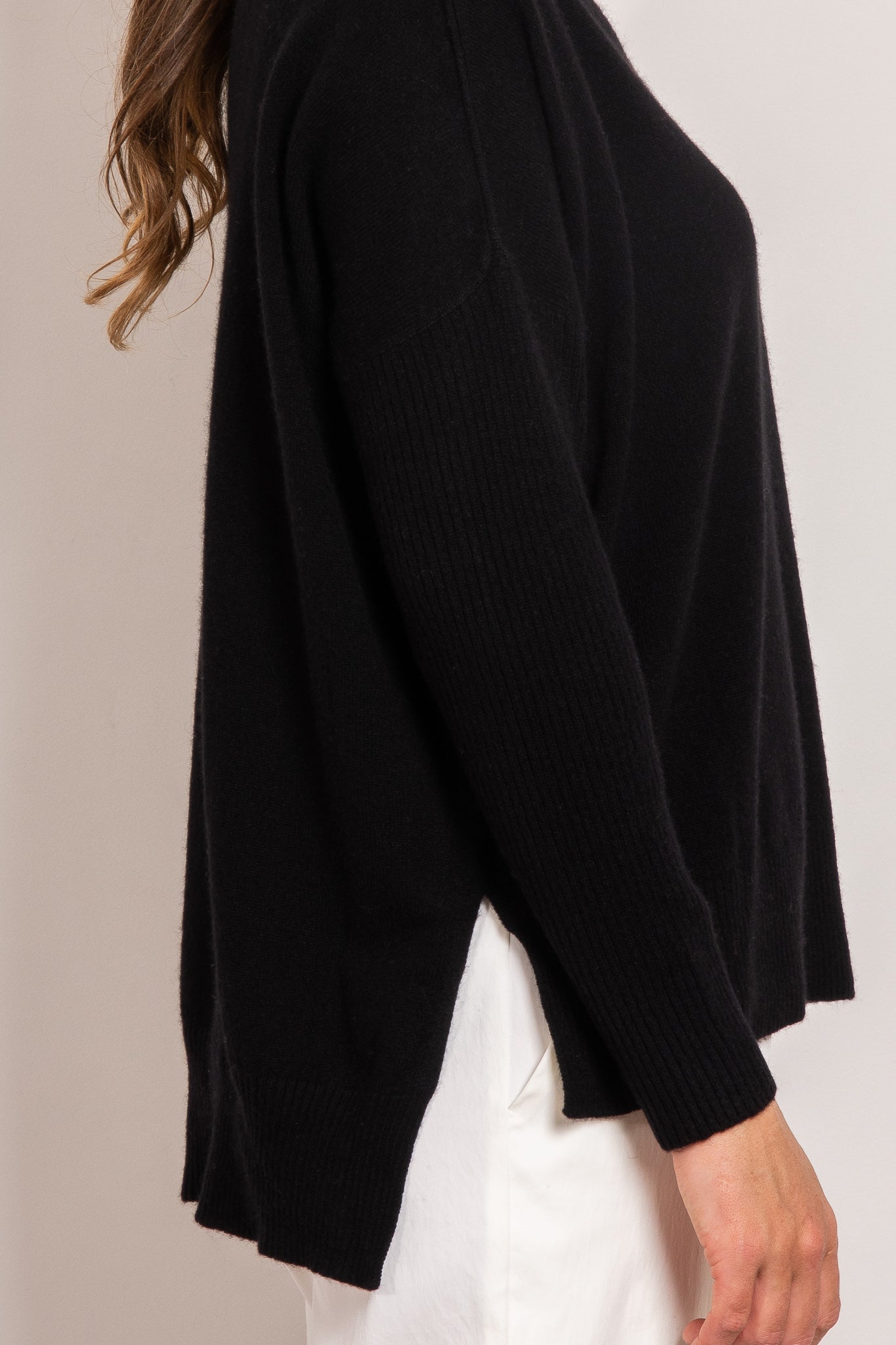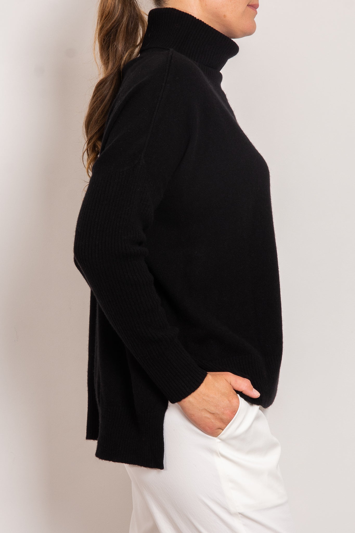 This timeless roll neck knit is made from 100% Mongolian Cashmere. Featuring a flattering rib detail across the hemline and sleeves. The stepped back and side splits create a relaxed drape to maximise comfort. This classic style looks great over jeans and is a winter wardrobe staple.