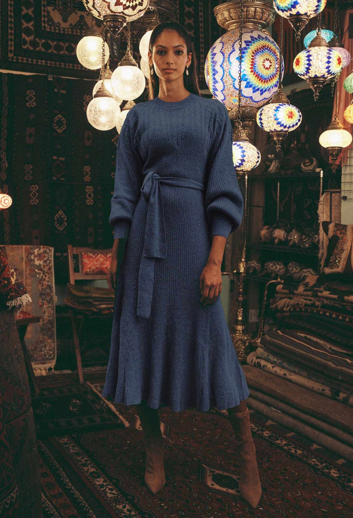 Introducing the Shammar Merino Wool Knit Dress - a statement piece that seamlessly combines style and comfort. This stunning dress features a soft, fitted rib knit and voluminous sleeves gathered into its cuff, exuding effortless elegance. Perfect for any occasion, this dress is a must-have addition to your wardrobe. Discover the ultimate in style and comfort with the Shammar Merino Wool Knit Dress.