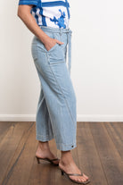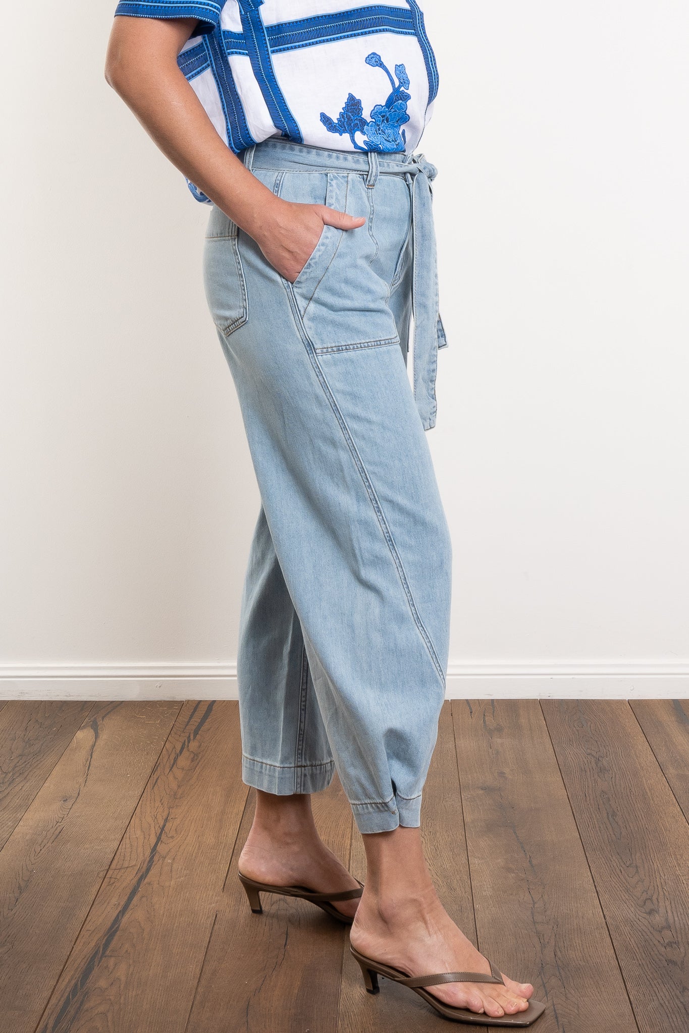Designed to blur the line between tailored pant and off-duty denim, the Embark Jean offers a fresh, softly structured silhouette that moves with ease. Crafted from a cotton–lyocell blend, it features curved front seams, carpenter-style pockets, and a removable matching belt for a considered finish. Polished yet relaxed, this is denim reimagined for day-to-night wear.